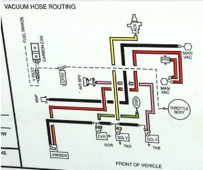 that is your tab tad connections, has the emissions/smog been removed or attempted, do you have emissions check? That goes to a diverter for emissions control, one should have been yellow, and the other was pink/salmon (not faded red), should have vacuum label under hood or click on link I posted, get you fixed up.