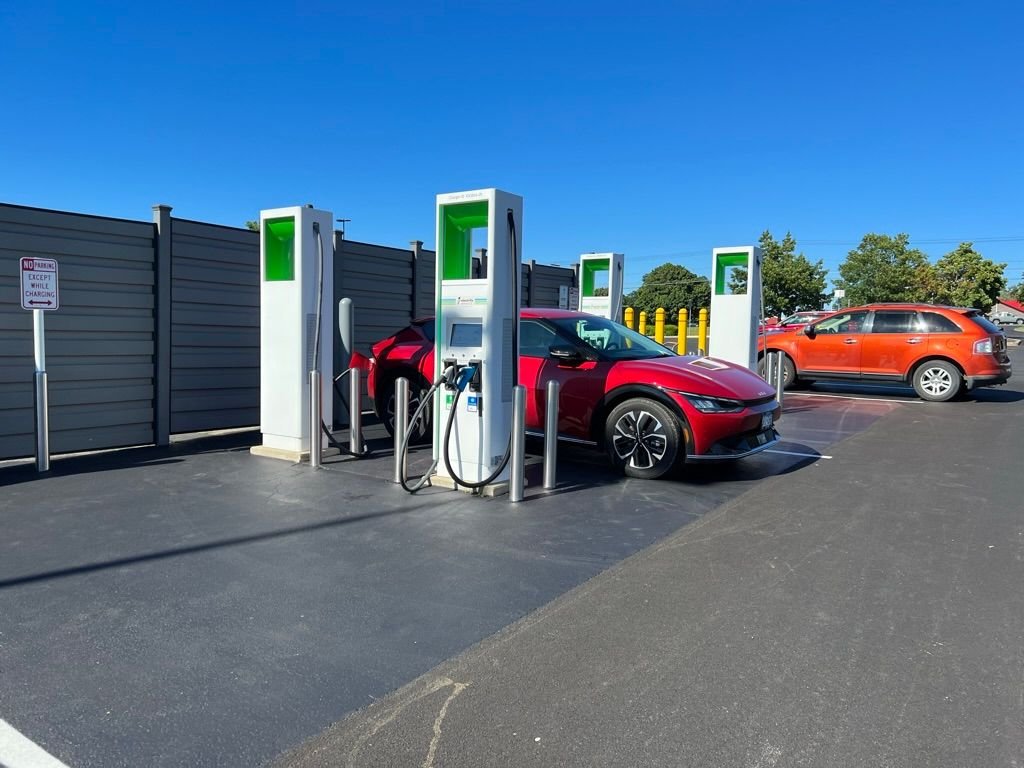 ON edit, just to clarify what I mean, this is another photo I took at an EA station. The charger in front of my car is the only one here that had a CHAdeMO cord. But it also had a CCS connector, so both my car and the Lightning could charge from it. And every other charger you see here. Assuming they worked.