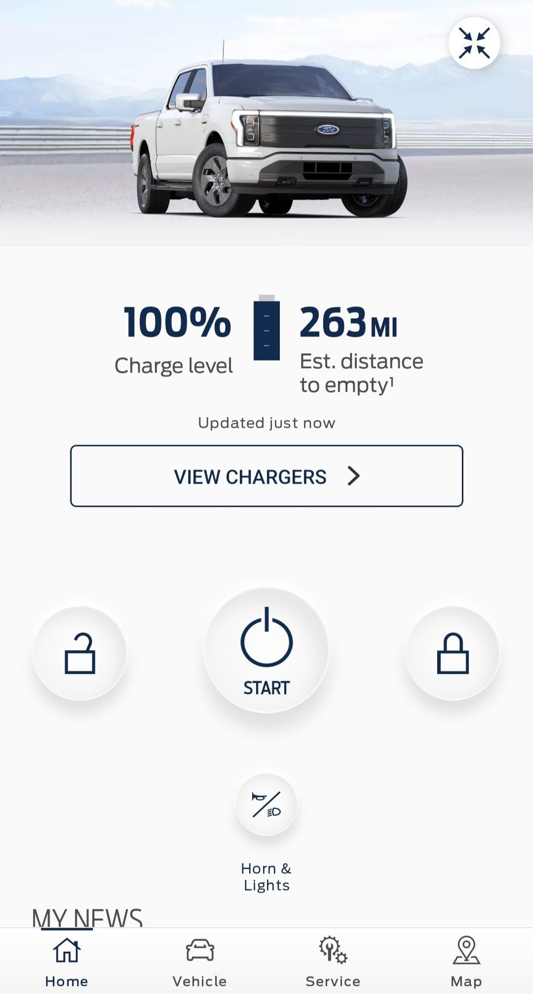 Again, just want some of the guys or gals that have been looking to get real world feedback. The one thing I want to keep hammering is that in my experience you cannot drive the F150 Lightning like any ICE vehicle. Constant highway speed doesnt give good efficiency, the best way I can explain it is you have to drive the contours, curves and elevation of the road. Varying your speed say from 55-62 to the top of the slight hill then coasting down the other side for full regen brake action. I have not used cruise control that much, It just really takes away efficiency. Here are screenshots and a pic inside the cab. Note the in cab pic says 99%, but Fordpass says 100%. I have no idea why it says different.