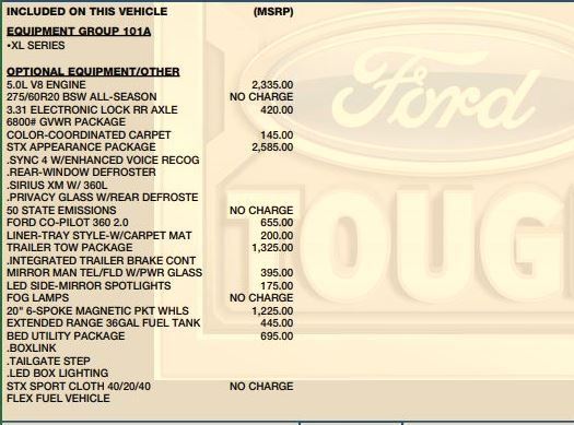 This base XL has STX just for black interior, Agate black exterior, 3.31 locking, privacy glass,36 gallon tank, bed utility, Go-Pilot 360 and more. 2100 in package discounts makes a nicely optioned truck for not much money less the Huge discount on Z plan.