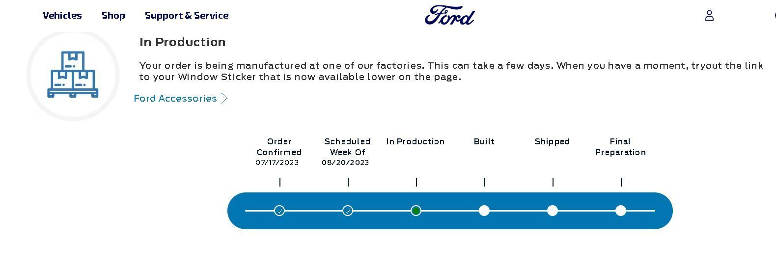 Ordered the 150 7/17 had vin on 7/20 build week on 7/21 of 8/29 then got notification 7/27 the truck was in production!