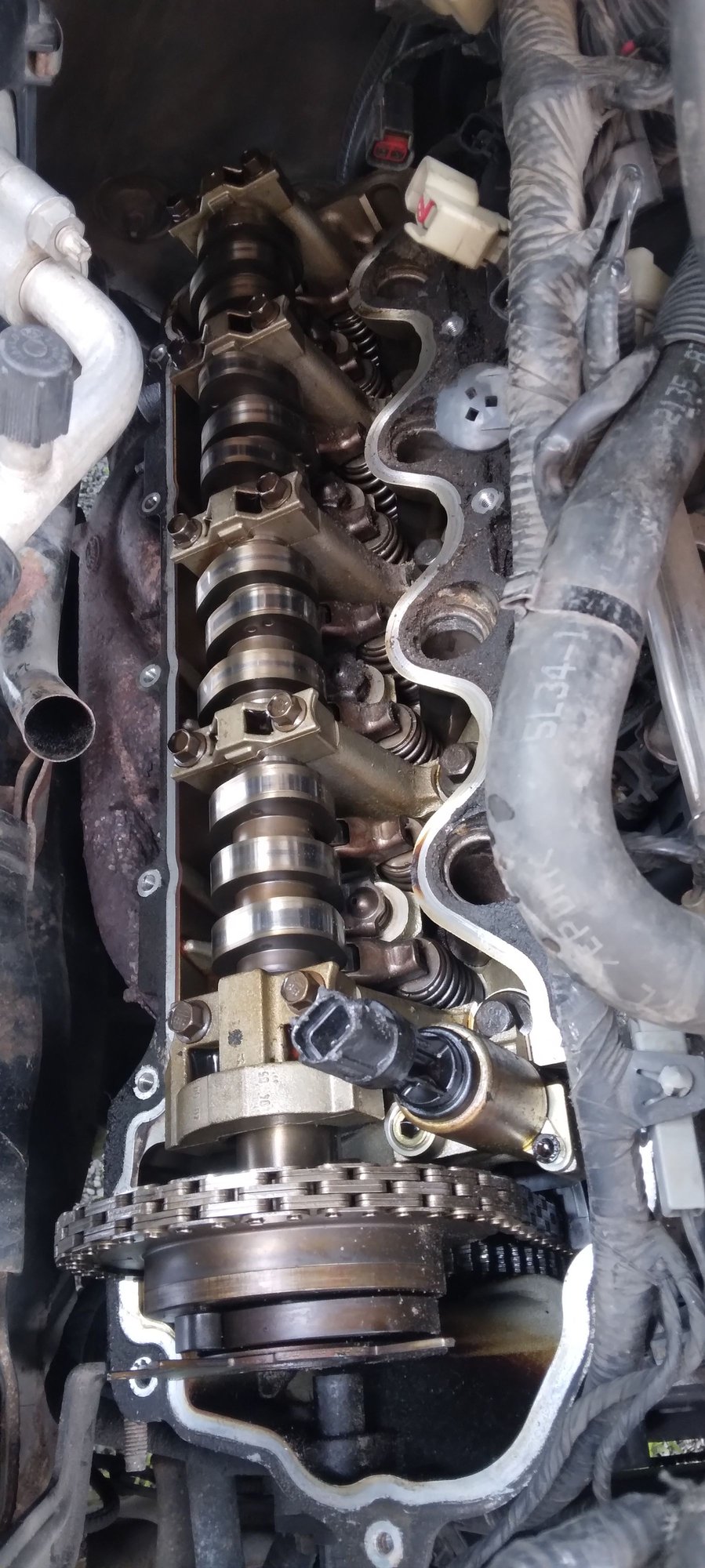 I just took off my passeneger side valve cover so I can replace my followers hoping to eliminate the noise. Concerning the timing chain, if the chain or tensioner is worn, would I be able to feel play in the chain? At 220k, I think it looks pretty clean inside, am I right?