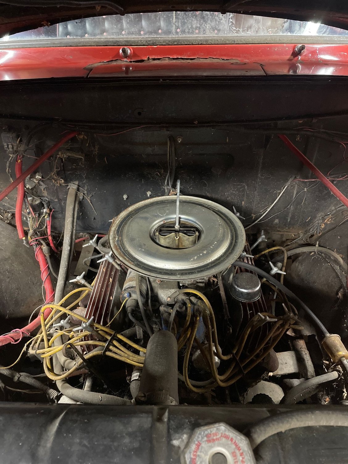 And the big question...The wiring is a BIG MESS. Scary big mess. there's wire nuts, fuses in weird places, and random wires all over. I need to get this out of the garage once i get the tires on it and pressure wash it. What are my risks? I'll take measures to prevent water from getting into the carb and vents on the tappet covers and I will keep the pressure low. Just need to get the leaves and grease off the power steering pump and engine, etc.