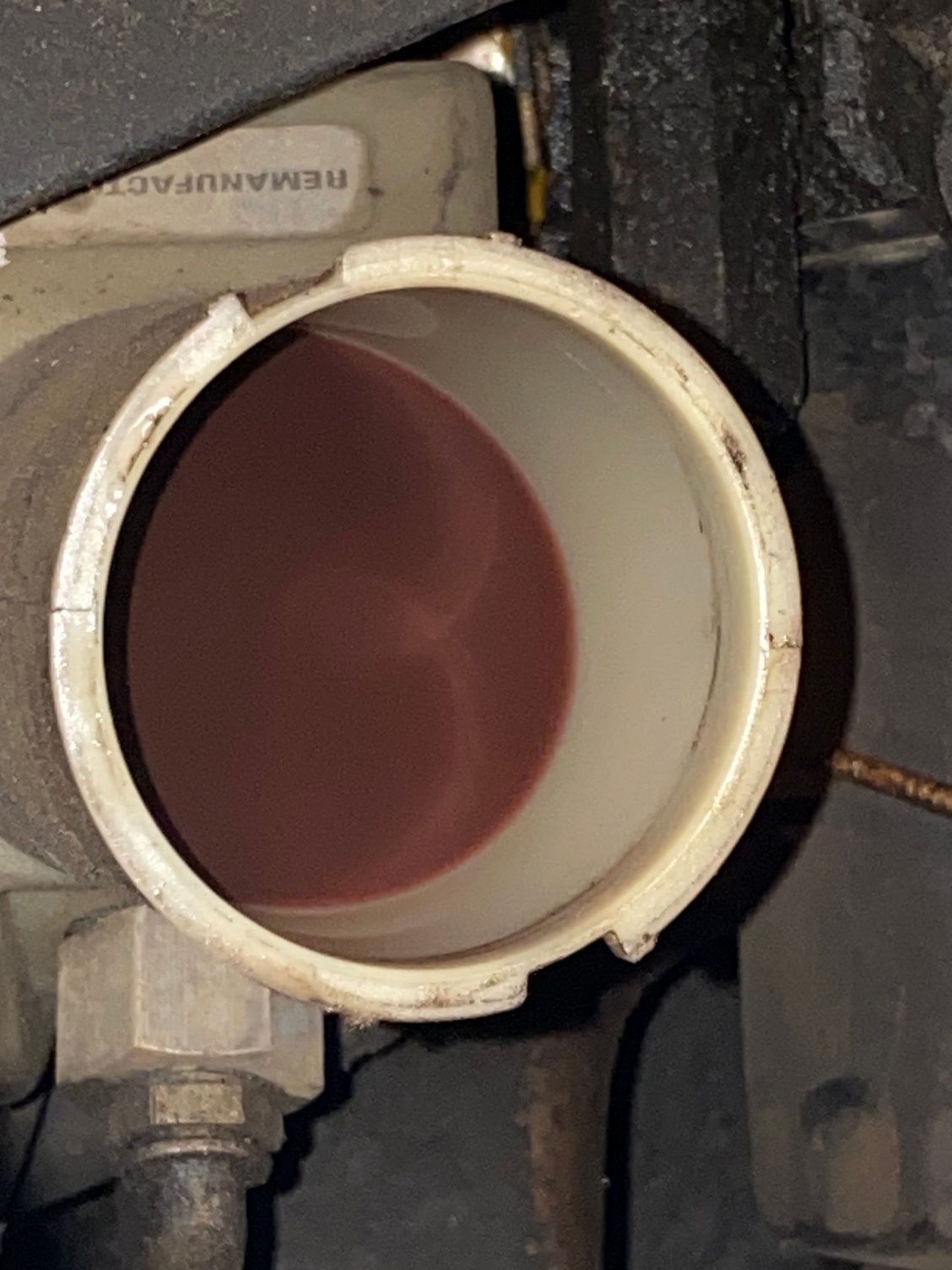 It might have gotten some moisture in it. Moisture and atf makes it turn lighter colors all the way to pink.