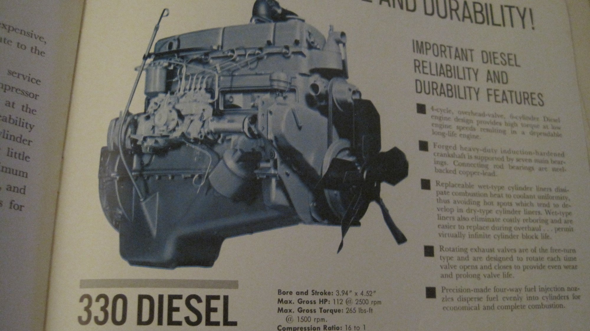 @tripleframe has or had brochures and other info from the early '60s that mostly showed, iirc, the heavier trucks featuring diesel options.