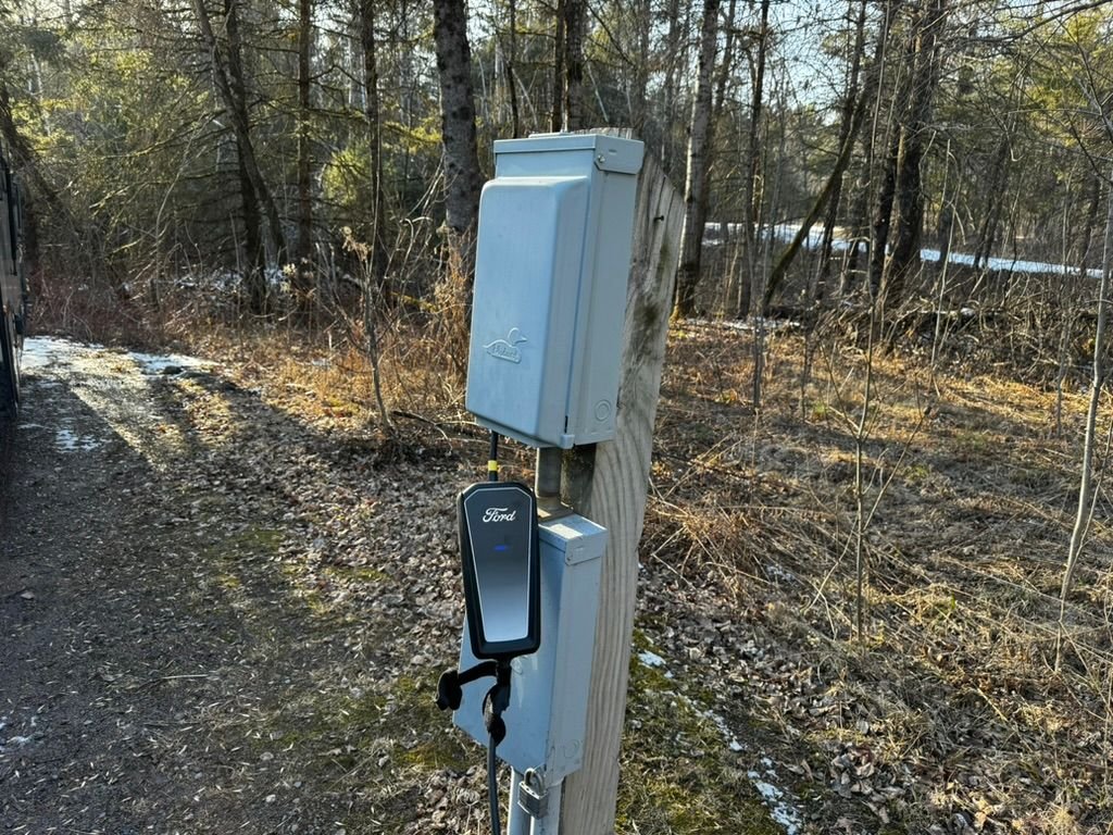I plugged in to the 50A outlet at the campsite and charged back up to 99% overnight in about 13.5 hours. We went to the train museum in Duluth yesterday morning and plugged back in at the campsite while we had lunch, then left for home. We left at 91% and averaged only 1.4 mi/kWh without the helpful tailwind, arriving back home at 34%.