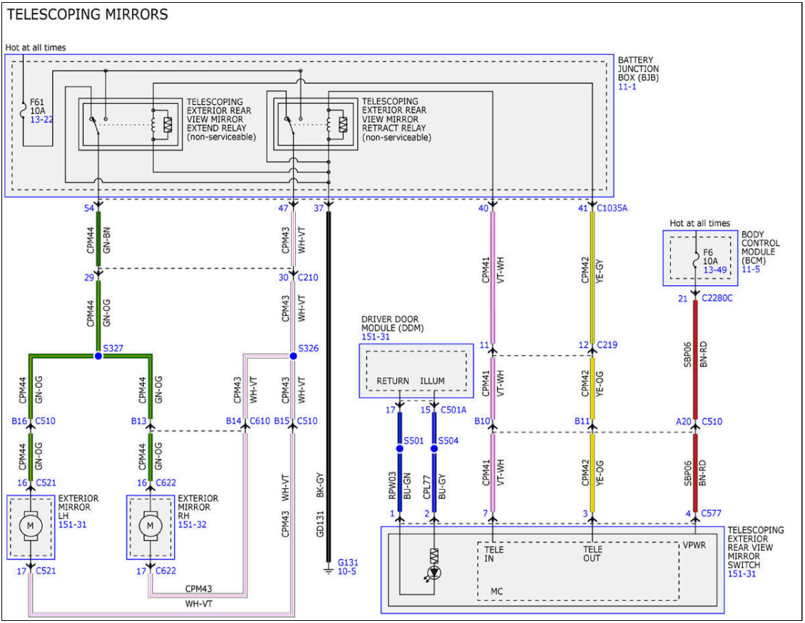 No I have not codes as of now. Per the workshop manual I was looking at for the 21 model, I believe the ddm only controls the led light for the telescope switch. The other wires go from the switch, to the non serviceable relay at the bjb then back to the mirror connector if I’m reading it correctly.
