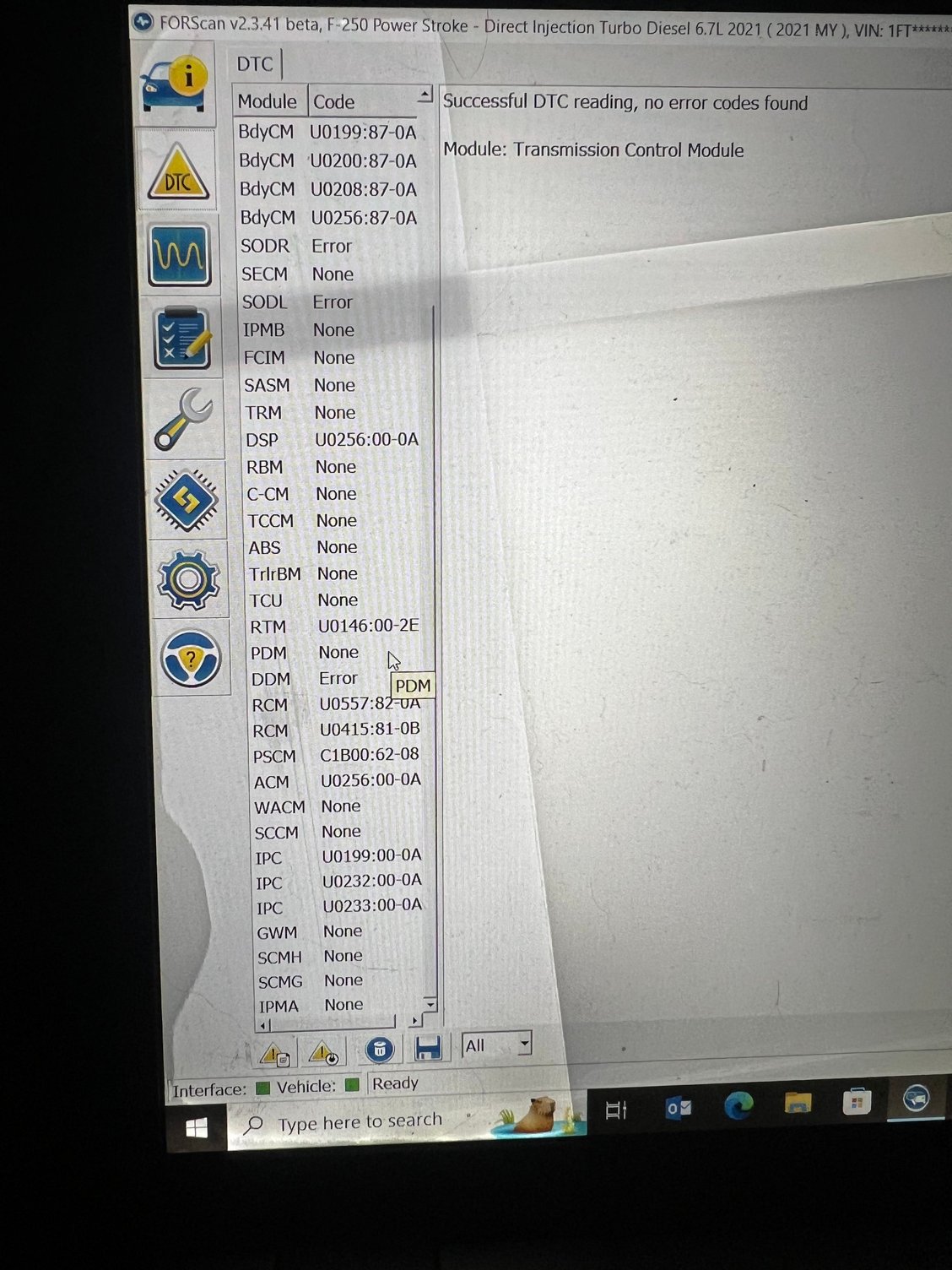For the module errors, the DDM has the MS-CAN bus running to it, since the DDM died, it’s also crashing the CAN bus when plugged in and no other modules on the MS-CAN bus can communicate with each other or the other CAN busses in the truck.