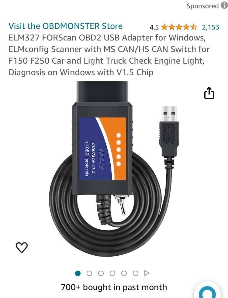 If you go the FORSCAN route, it's probably best to use the OBDLink adapters as Mark has pointed out -- I have their WIFI, BT, and SX (hard wired) adapters and they've held up well. Basically, you don't need to spend a lot of money like the rest of us on IDS, Launch, Snap On, etc, Forscan will suffice. Like most parts on this vehicle (e.g. substituting a Bosch relay for the Ford FICM relay at 1/3rd the cost) you can find a substitute that will Git R Done.
