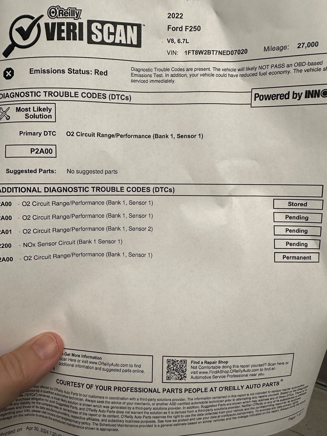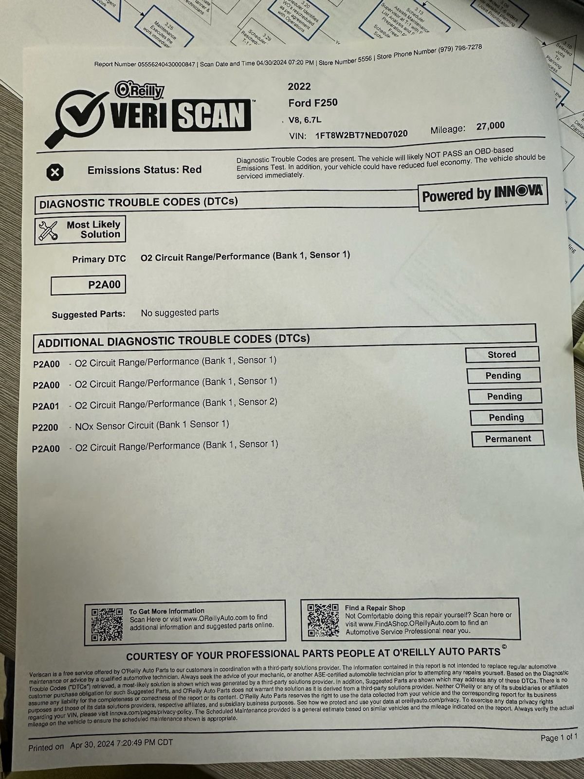 Just curious if you had the 22E04 recall done...? If you did and it's the NOX sensor, it may be covered...