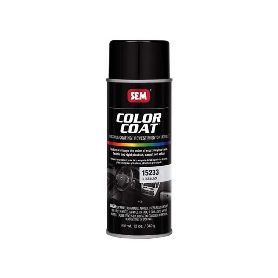 Color Coat Details: SEM Color Coat (12 oz Aerosol Can) covers approximately 10 square feet. SEM Color Coat is not a dye, but a fade-resistant flexible and permanent coating, specially designed to restore or change the color of Vinyl, Plastic, Carpet and Velour. It is used for but not limited to Vehicle Seats, Dashes, Door Panels, Consoles & all Plastic trims. It can also be used for Motorcycle Seats, Vinyl Furniture and General Vinyl & Plastics.