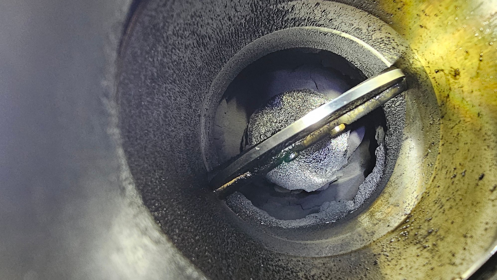 It is from the EGR and CCV. One way to reduce the build up is to remove the CCV and route the gasses to the rear of the truck, and cap off the opening into the intake. Adding a catch can may or may not help, depends on where the oil is coming from. The other way is to lose some weight, but that comes at a potential $45,000 fine. That round thing in the middle is a cone, the EGR gasses come in behind it. That "throttle" plate is used to block off incoming air so the gasses are sucked in.