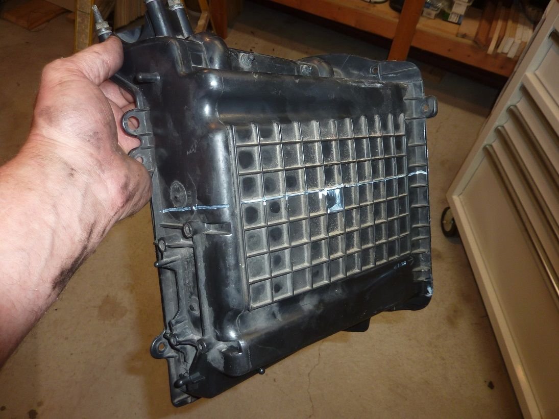 And just so credit is given where it is due, I am also stealing Jack's 2-piece air box cover mod. I'll be cutting it above the line, half way to the next rib. The plan is to hold the two sides together with 304 bar stock and screws and foil tape the seam.