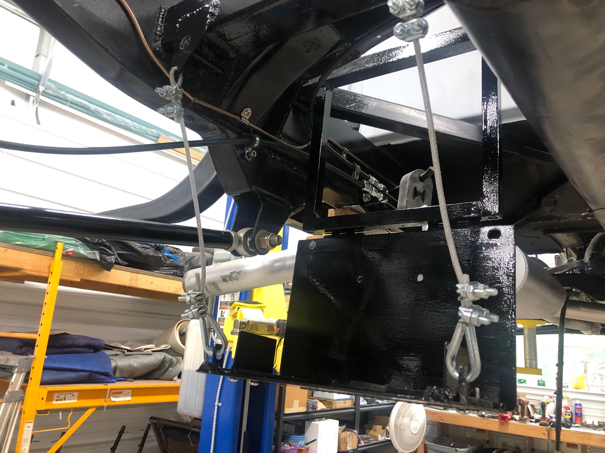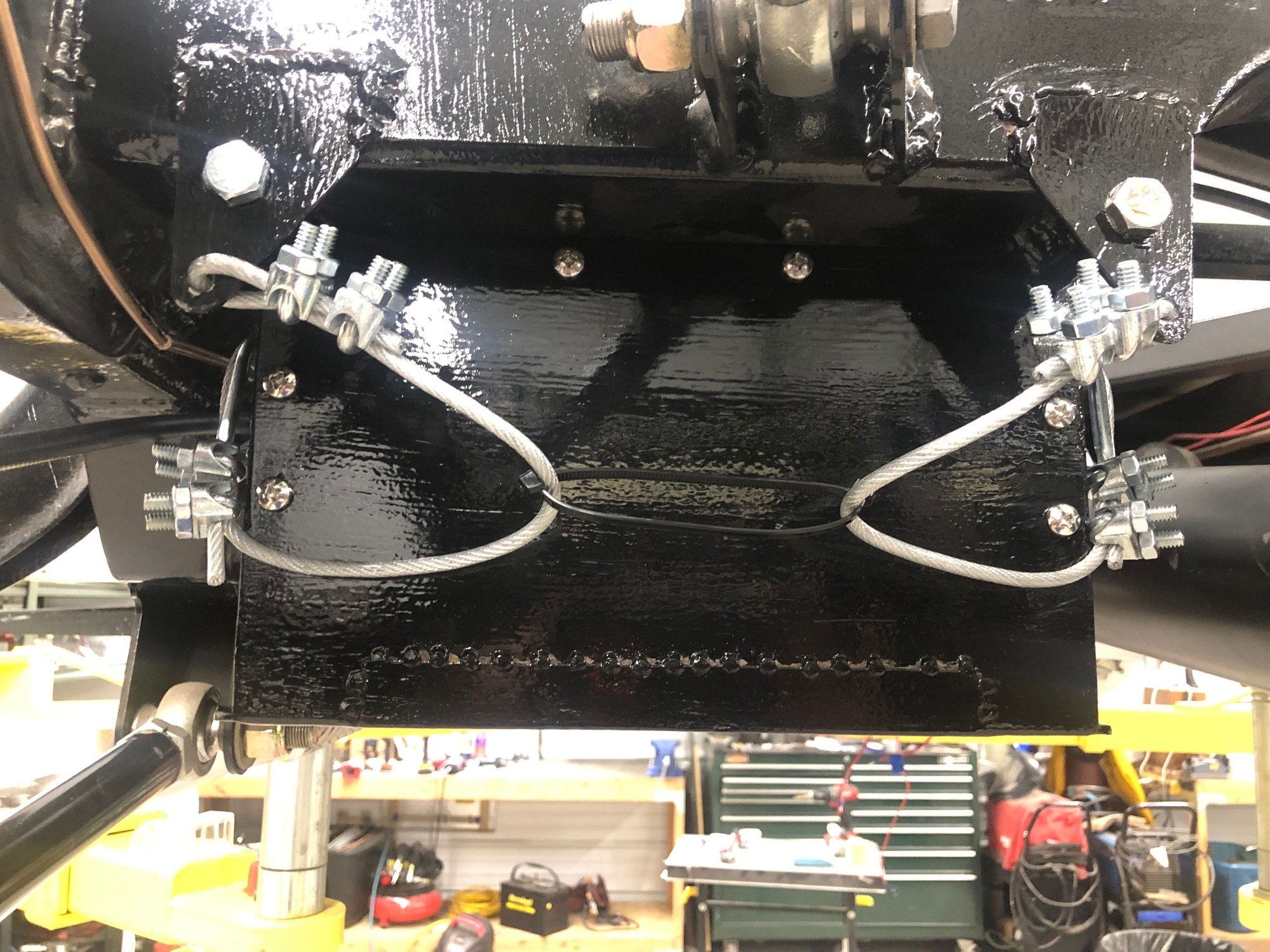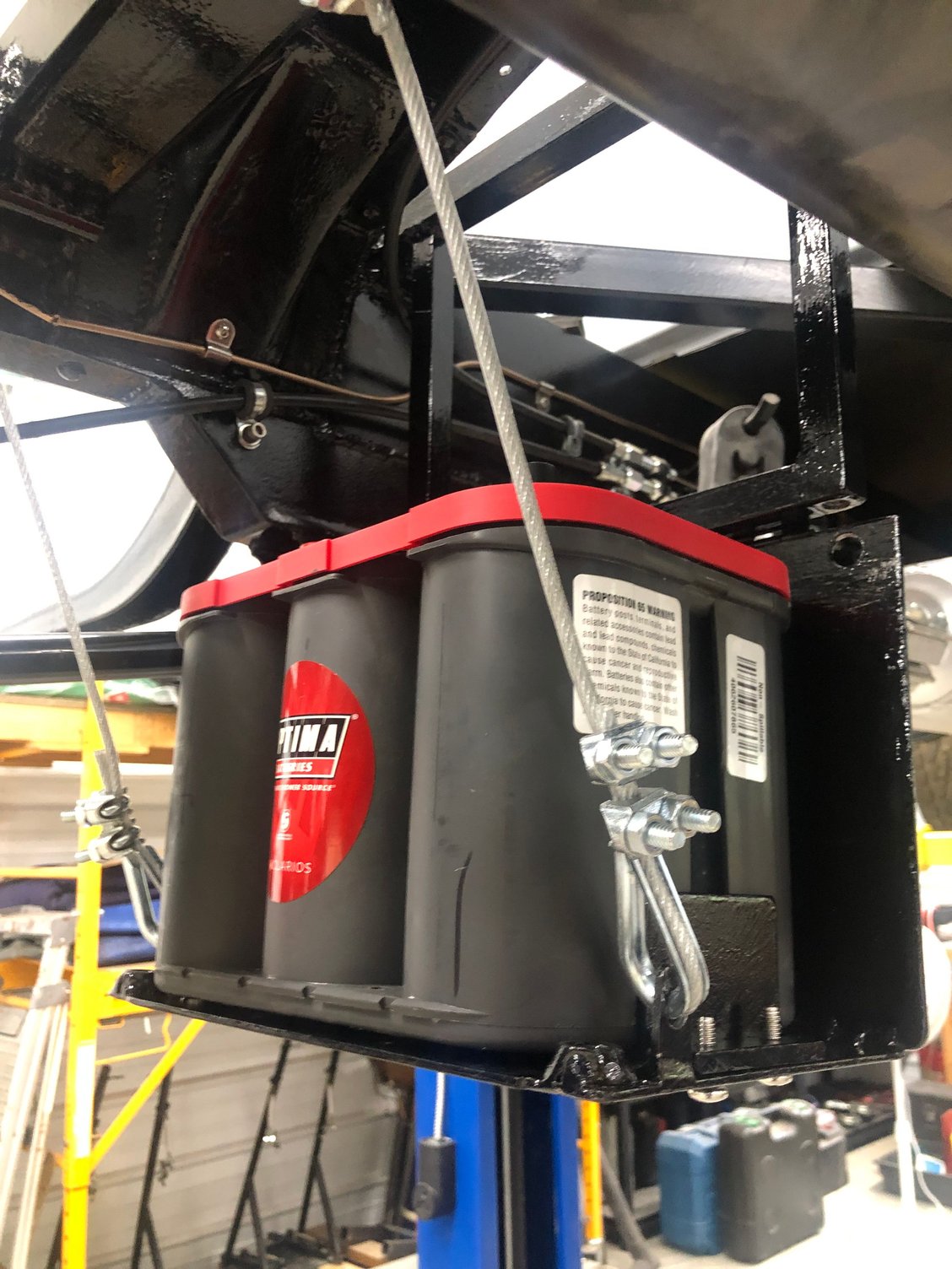 I wanted to mount the battery somewhere other than in the engine compartment and usual places of in the cab, between the running boards and frame didn’t appeal. So ended up finding a spot just in front of the rear triangulated suspension where the battery would fit. Probably have too much time on my hands 😊 but ended up with this setup that can be dropped through 90 degrees to get access. I will be installing additional battery terminals behind the passenger seat for charging and/ or jump start as needed.