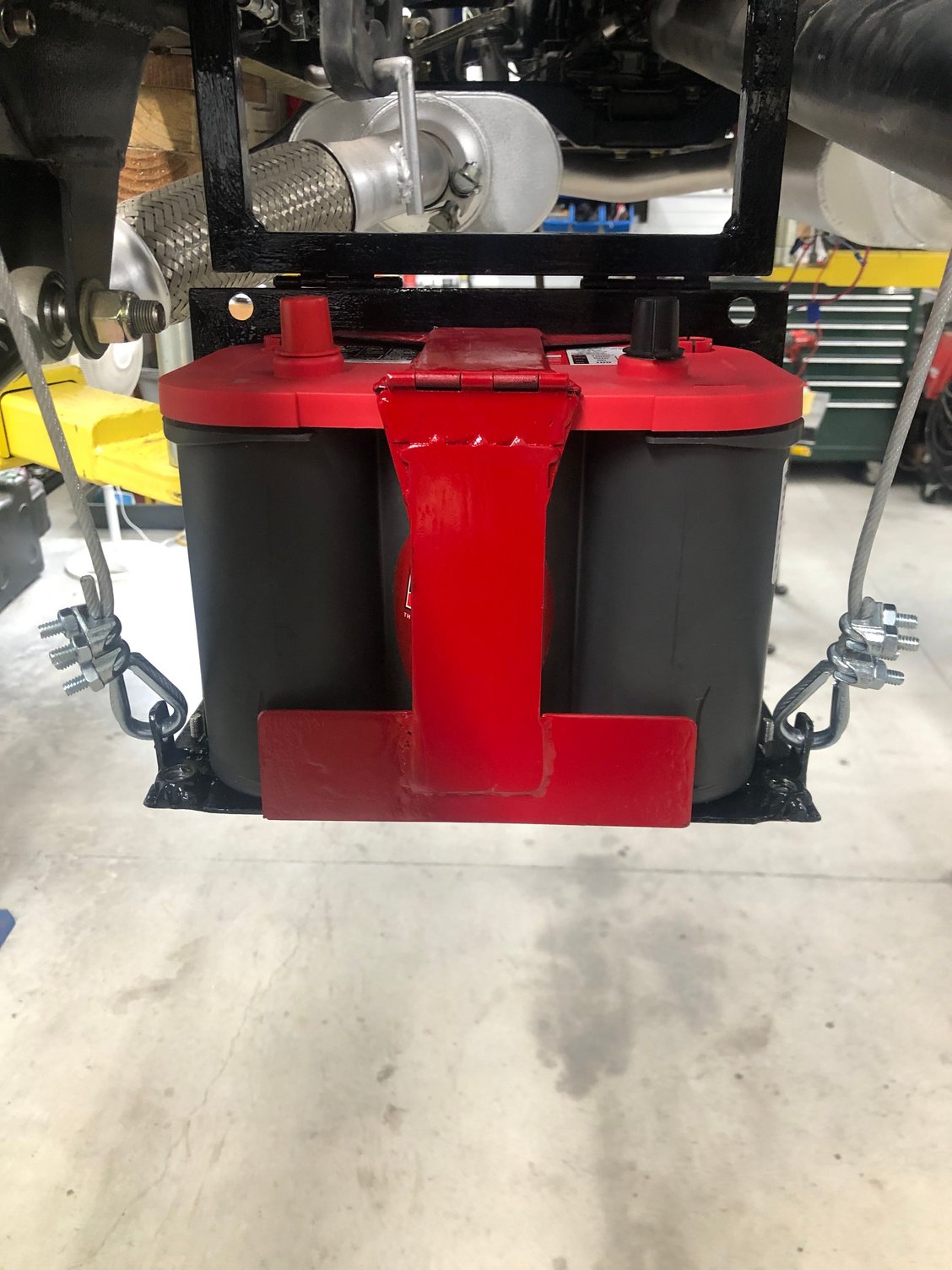 These old trucks were not designed for a heavy battery under the hood, especially when they are mounted to the inner fenders. That area is not strong enough.