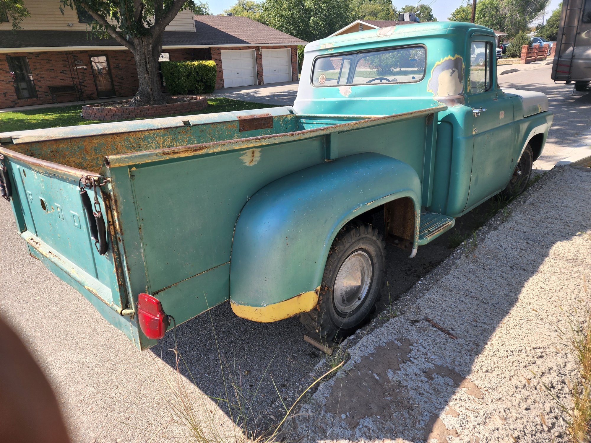 several years ago i bought a 60 f100 out of a storage unit...got the title work done had planned on selling it as a project for someone else to take on...well years later apparently no one has interest in it unless i sell it for a bag of skittles so trying to figure out a game plan...do you all think i should just cut my losses and get my bag of skittles or try and make it a runner and enjoy it..I dont have a lot of time to do a rebuild so it would turn into a couple year project for me...so take a look at the pics and tell me what you think. i re-arched the front leafs and converted to disc....when i got it out of the unit it didnt have the front end...i had to make it a roller..guessing previous owner was working on restoring