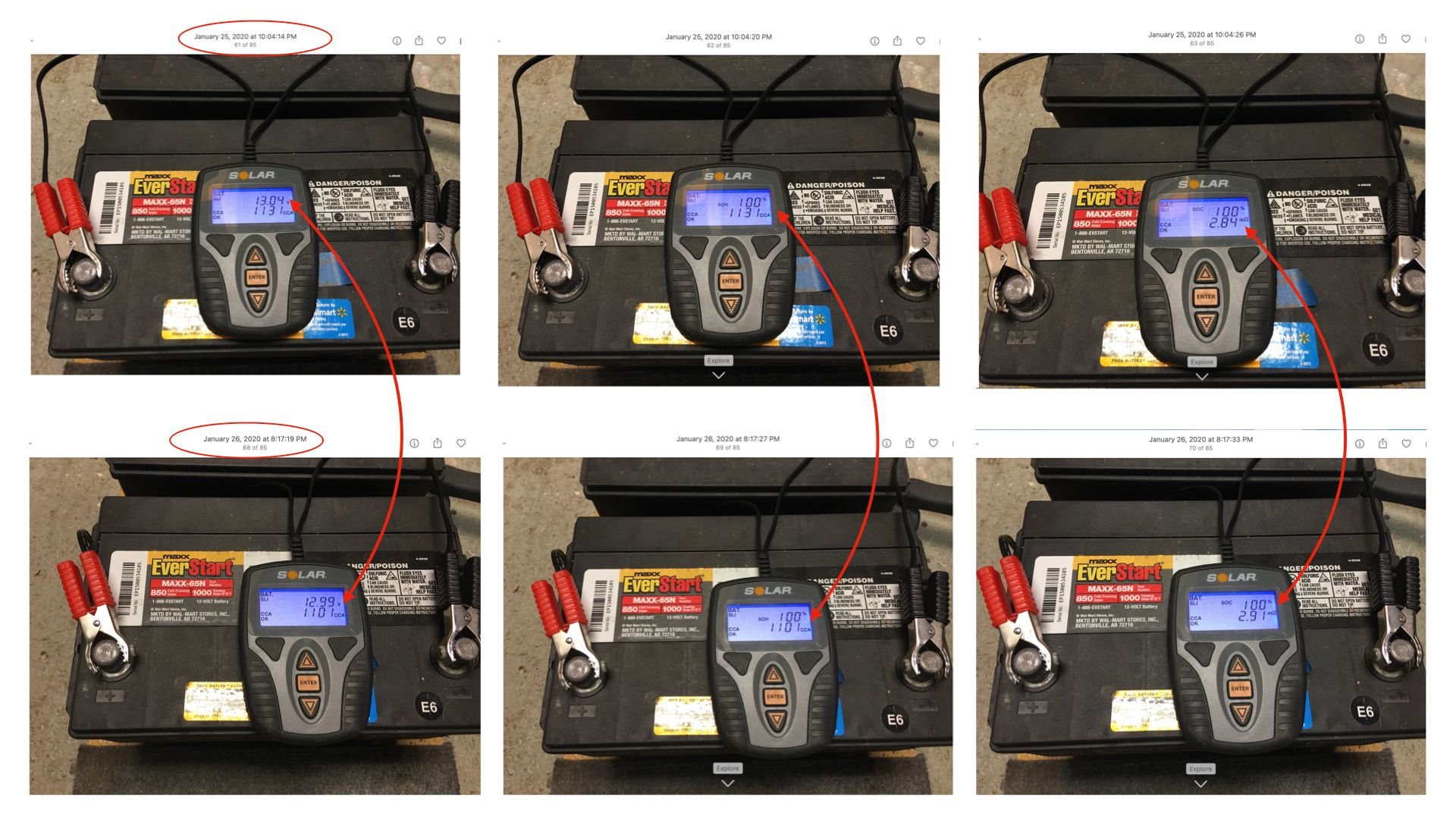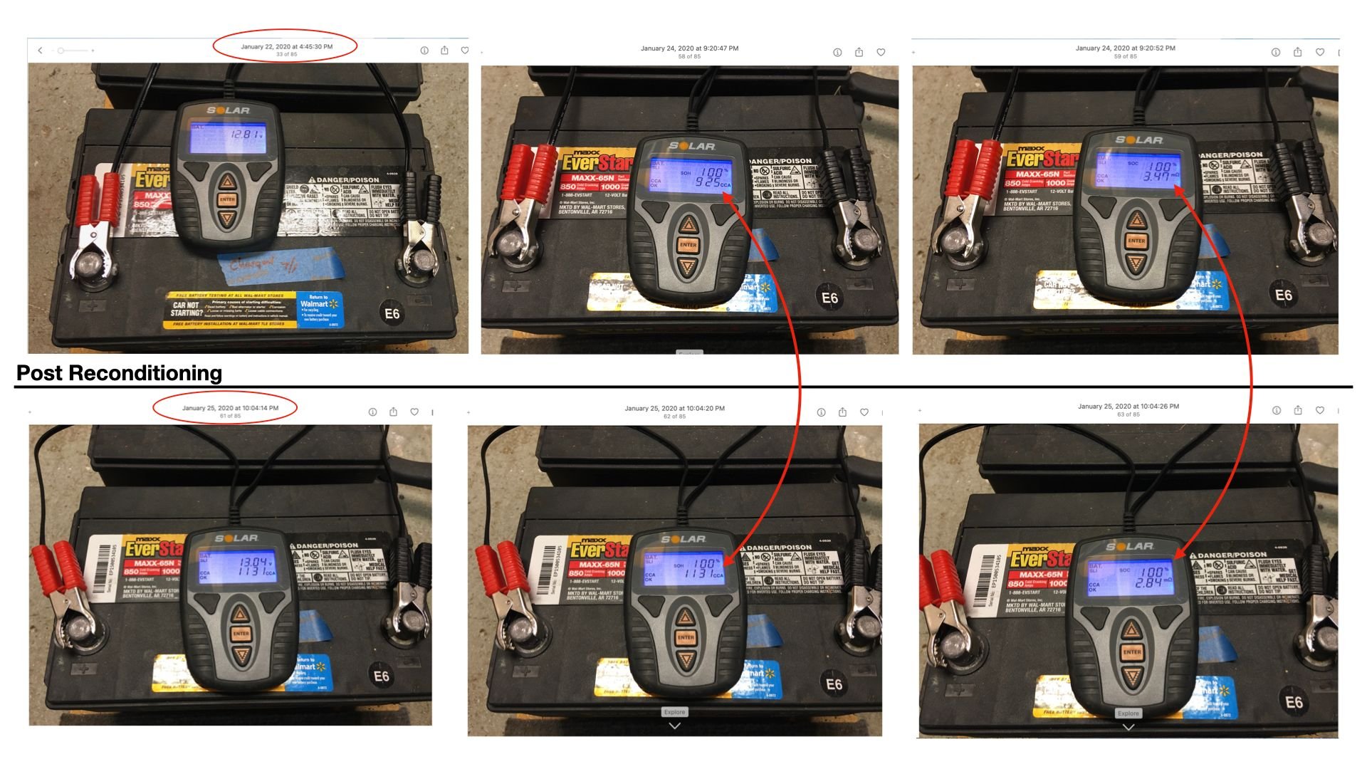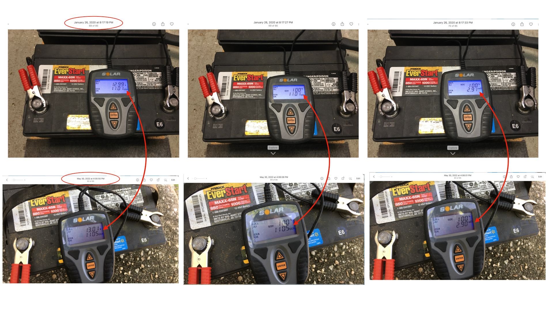 Two years later, now 6 years old. While my truck sat during the engine rebuild, these were rotated into use at the farm with the tractors. The capacities and resistance will change over a few days and days of use. These are the ideal post charge.