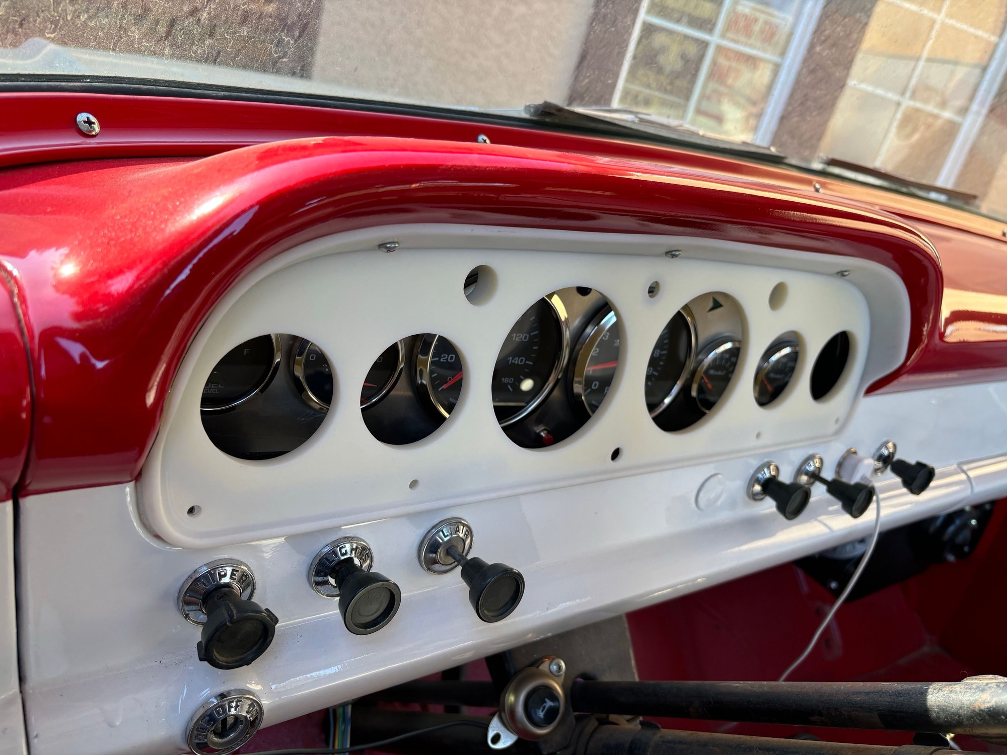 Here is the image of the prototype in my ‘57. Look closely you can see the formed ABS panel and gauges tucked in behind during the test fit.