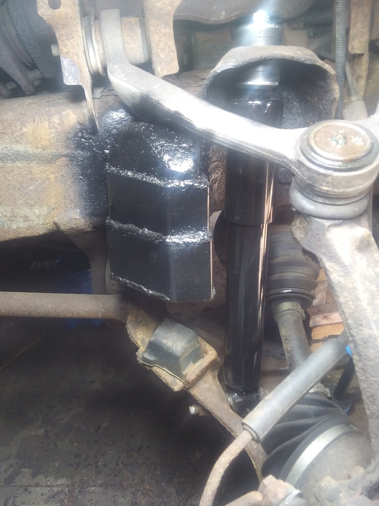 Here's a before and after pic of the front bump stop. Not much left to it.
