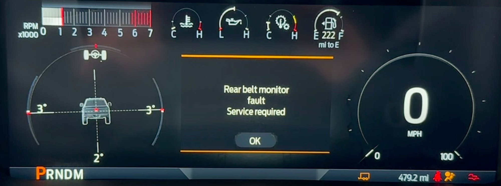 And then a few seconds after this message faded away, a second error message "Rear belt monitor fault Service required":