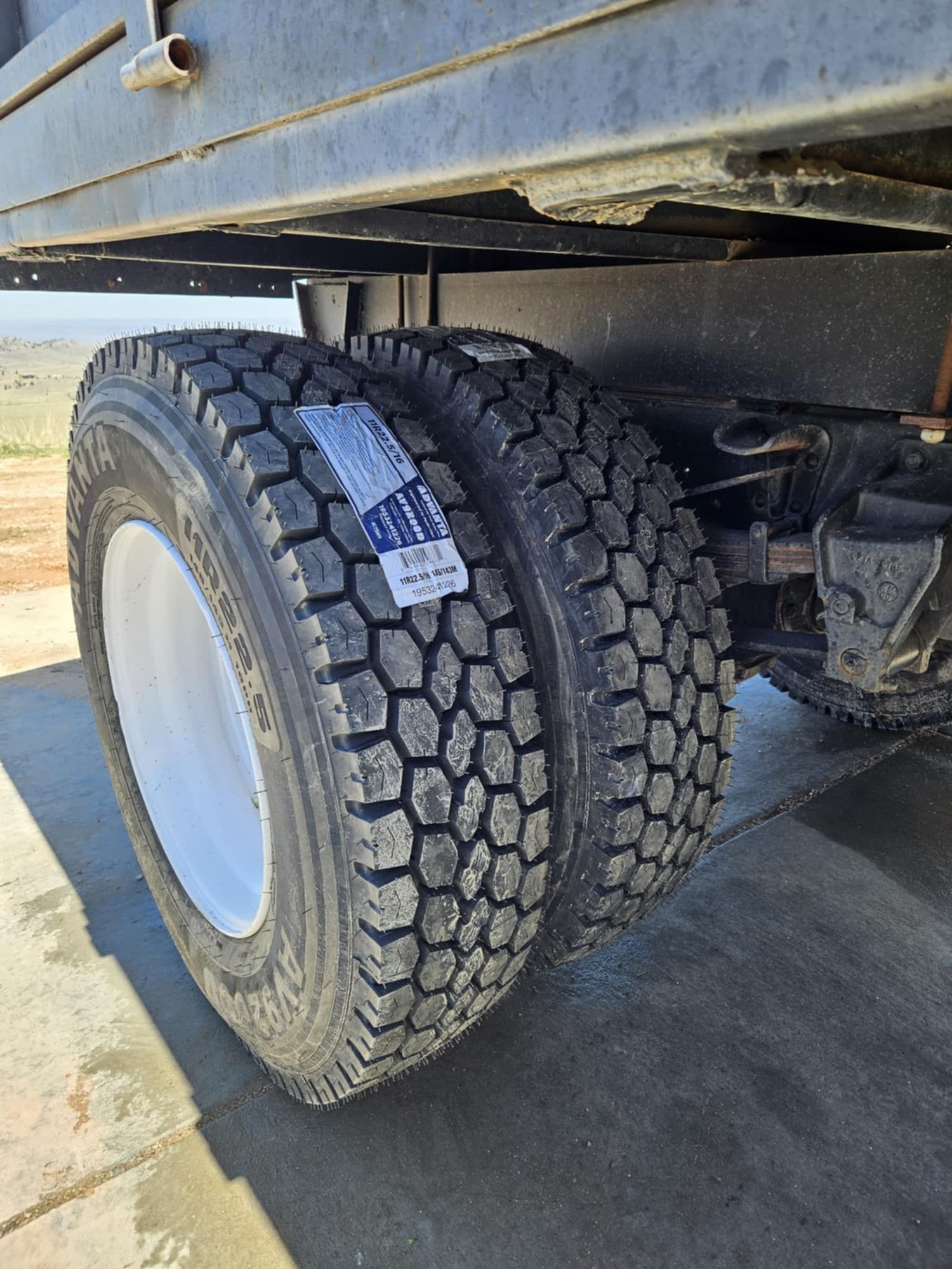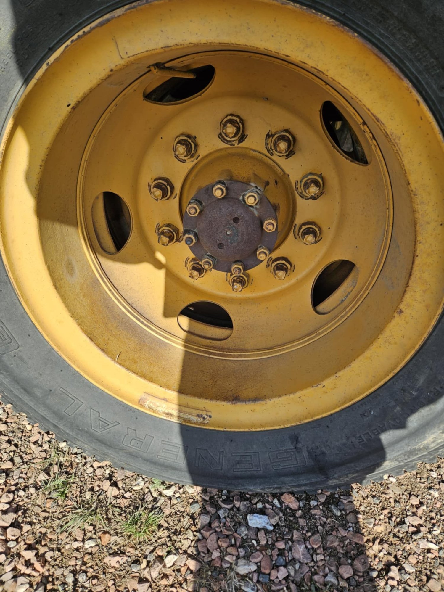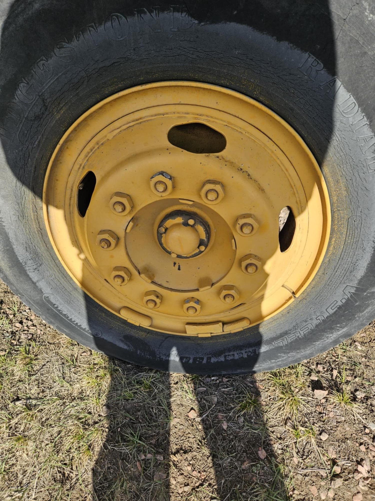 I found a nice set of 22.5 bud wheels. Added some new 11R-22.5 tubeless drive and steer tires. Gained almost 4 inches in overall height. Curious to see what that does to top end speed. I learned that the Big Dog Milwaukee 1 inch impact will strip the left hand threads when you are stupid and try lefty Loosey Right Tighty. Luckily just one. Any advise where to look to find a new left hand front wheel stud and lug nut. On the bright side I think it looks pretty Bad-***