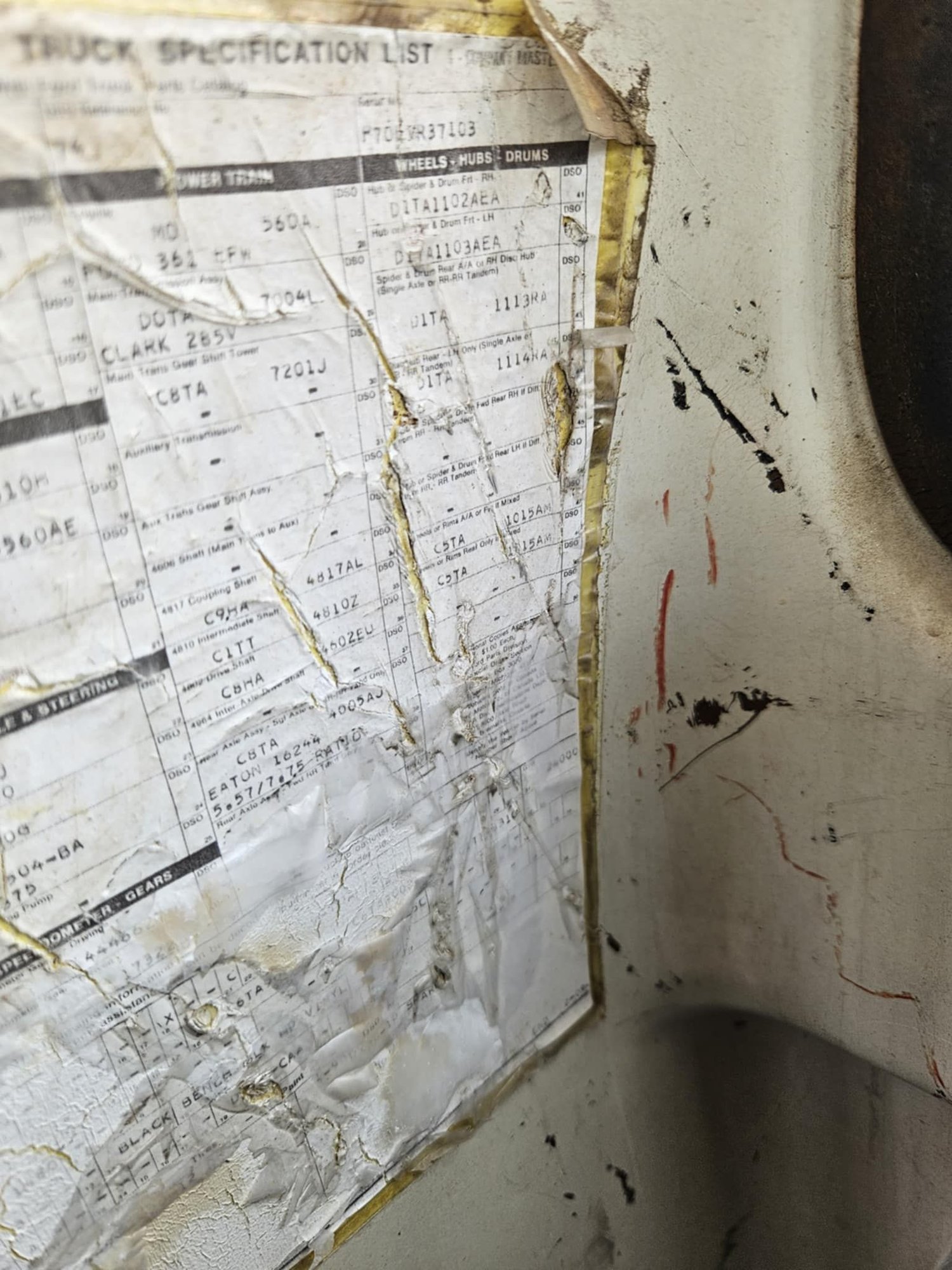Thank you for the quick response. There was no tag on the door. nor did I get a title. I got this info off the build tag on passenger cab corner. alot of the info is unreadable. It has spring numbers I can read I am not sure I could determine GVWR with that. I also want to switch over to 22.5 tubeless tires and rims. As I was trying to find some, I was asked if I had Budd wheels. Have any insight on that? Also need to source a radiator.
