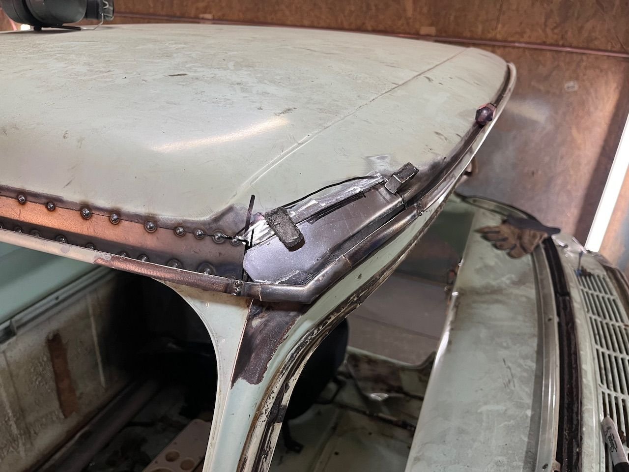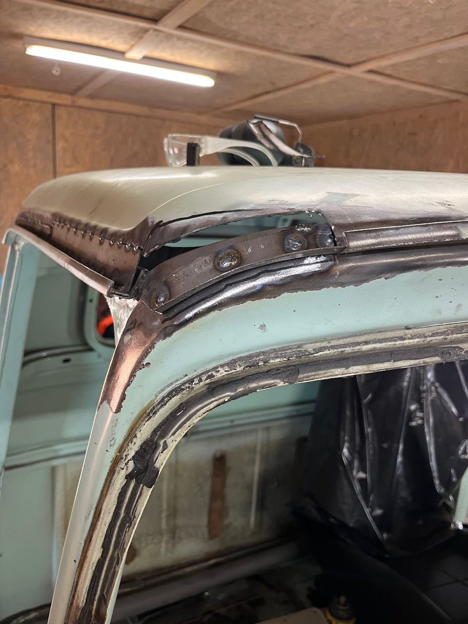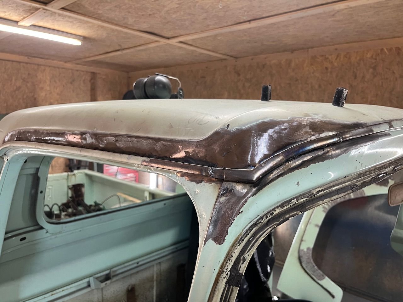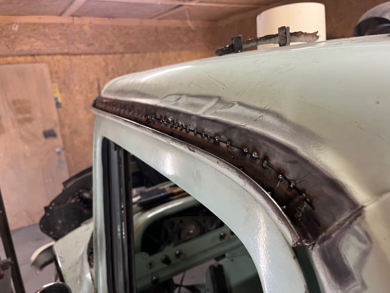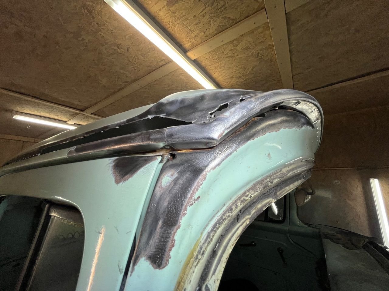 Around the rain gutters the roof panel rusted thru. Don’t know how bad since the previous owner too a cut off wheel to it. Very crooked cut off wheel.