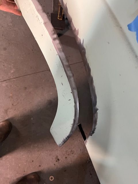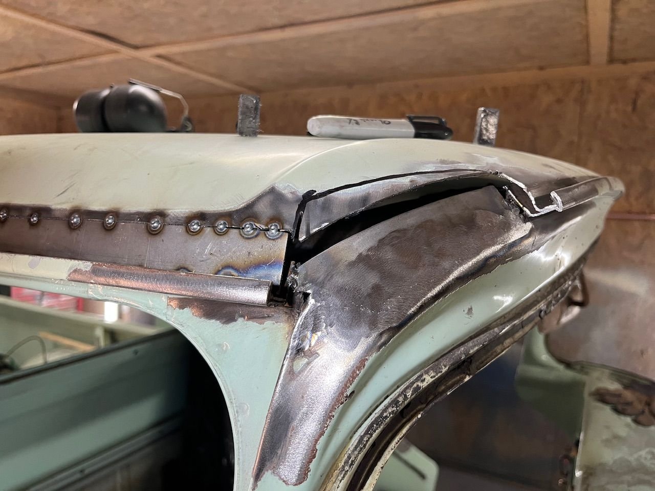 after this I trimmed the flange to size and then welded the good part of the drip rail back into place.