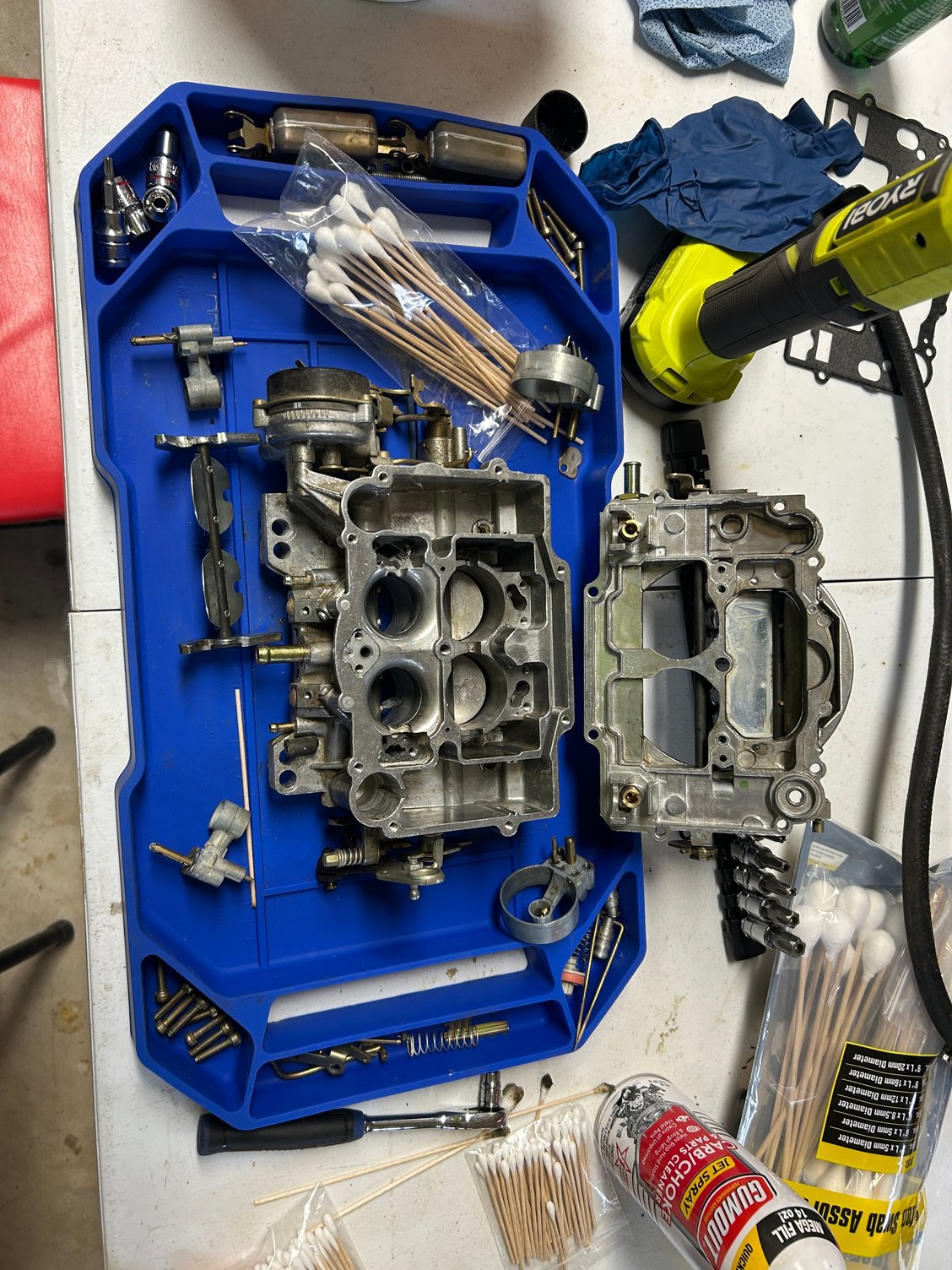 In the process of rebuilding and cleaning the carb along with cleaning the 10 pounds of grease and mud off of the transfer case. Luckily, both look good I don't think any repairs are necessary other than new gaskets and seals. Going to attempt to take the body off the frame in the next couple of weeks by sliding 4x4's under the front and rear and jacking them up and setting on jack stands. I will then put the frame on wheel skates and move that over so I can work on sanding/ blasting both over the fall/winter.