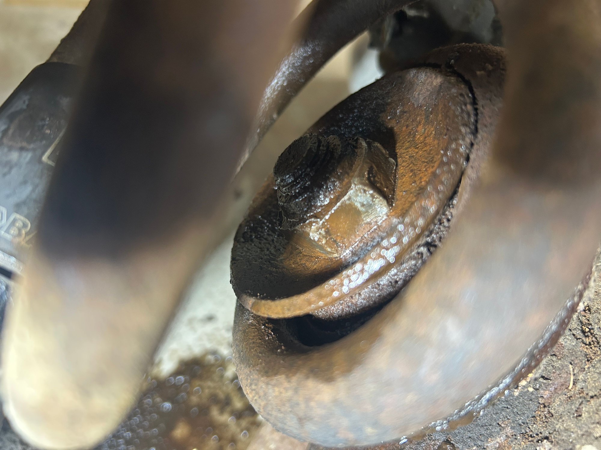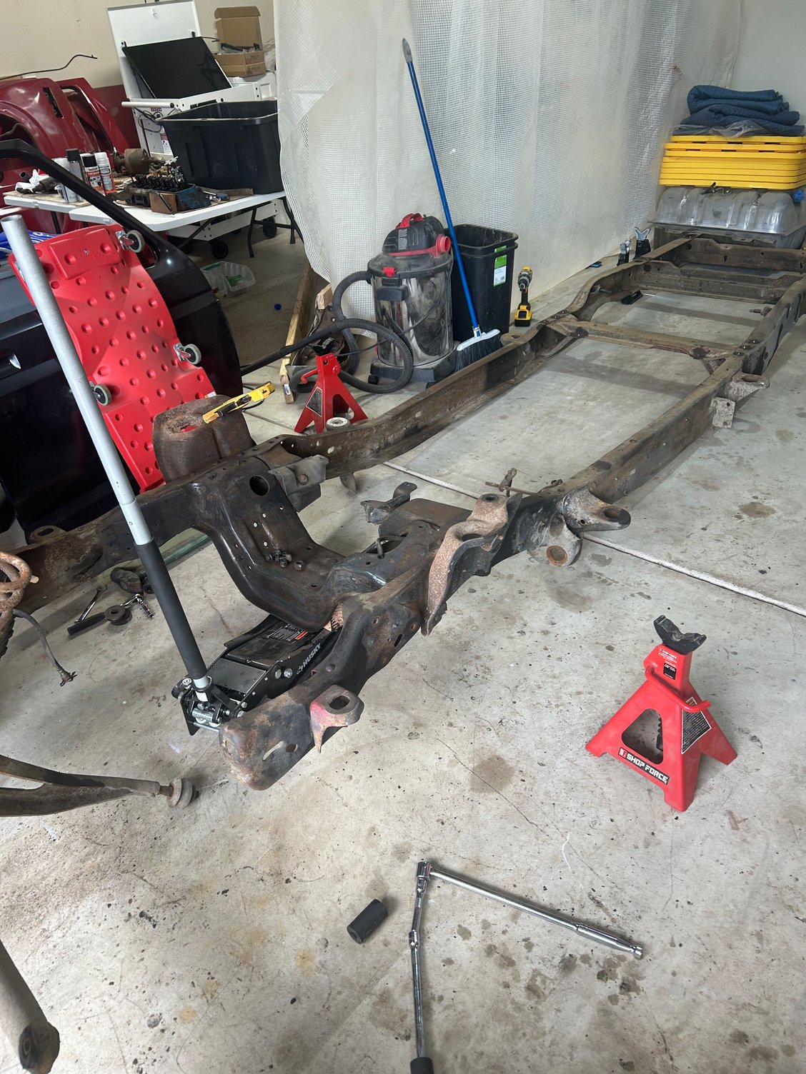 I replaced the coil spring/ shock brackets because the replacement frame had single shock brackets and I wanted dual shock like I had on my old frame. It was crazy how much debris gets trapped in between the bracket and the frame. I didn’t bother remove all the other mounts. Use whatever works best for you? I used a grinder and air chisel/air hammer to remove the rivets.