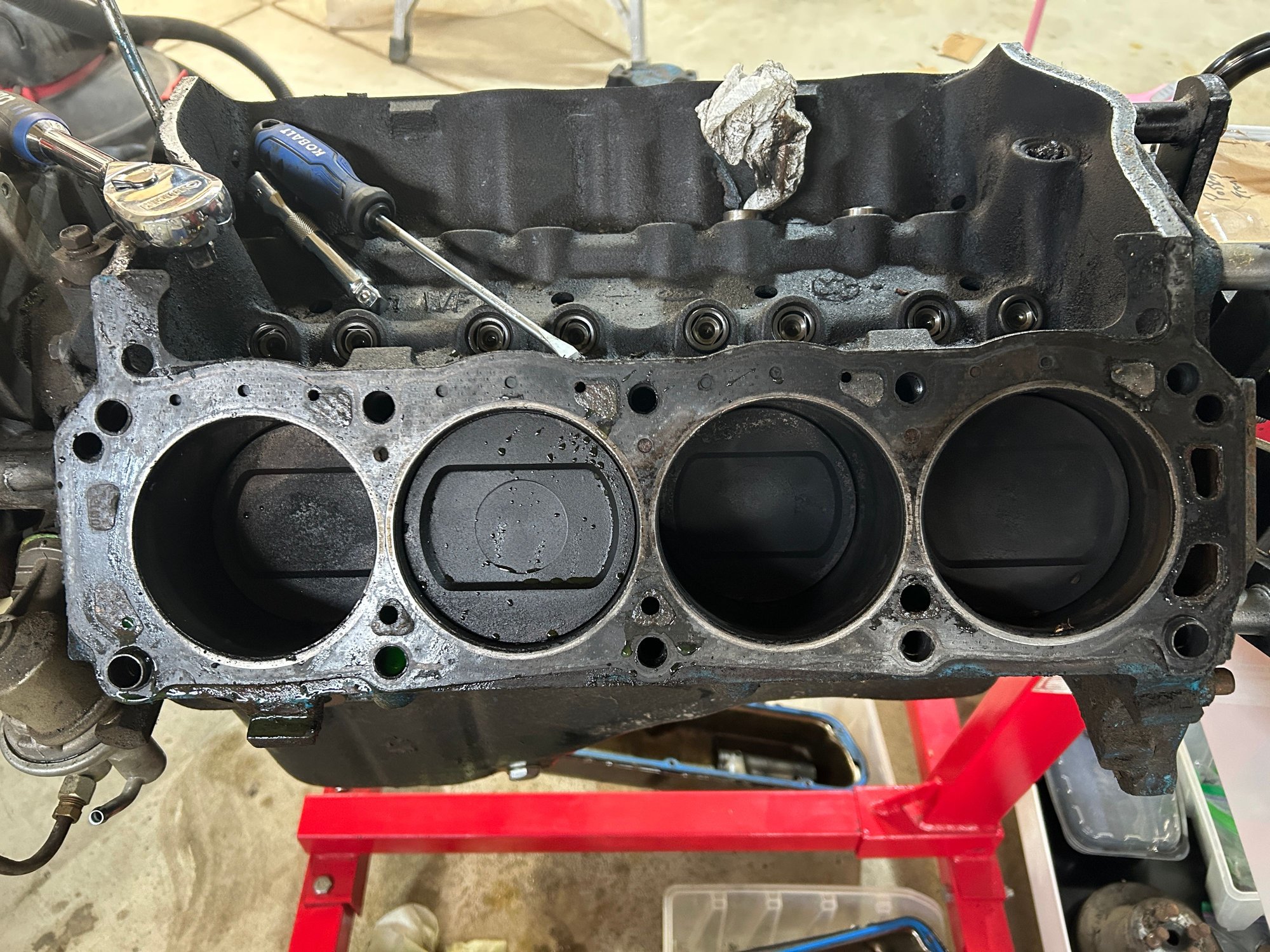 Pulled the valve covers off and this thing is pretty filthy. I was able to pull the intake and the heads tonight to get a rough idea of overall condition of the engine. The guy I bought it from said he thought someone rebuilt the engine recently, but I highly doubt it given the condition. I can feel a ridge on the back cylinder wall on either side. Will try and take the rest apart this week and decide what all this needs after I get it cleaned up.