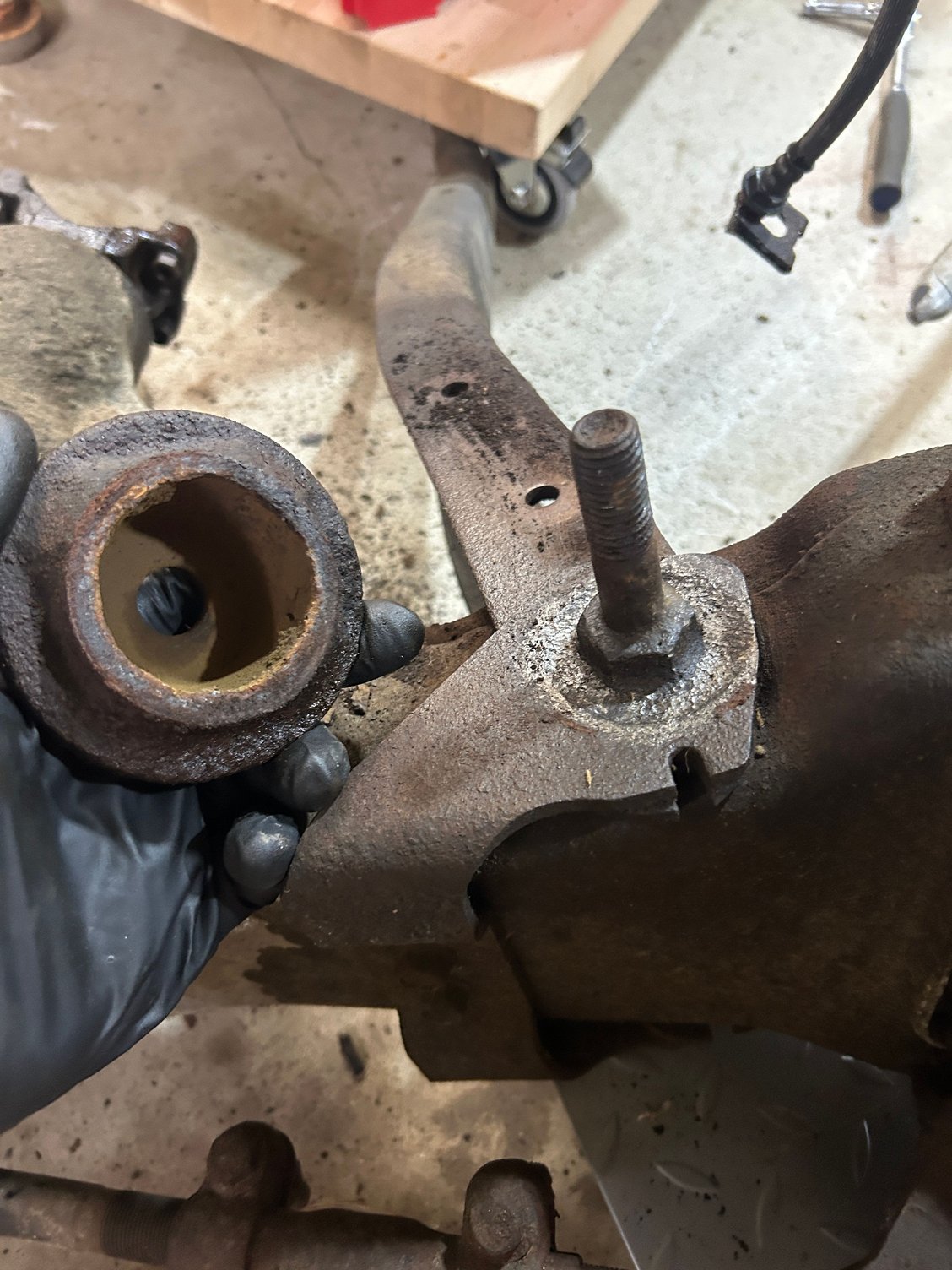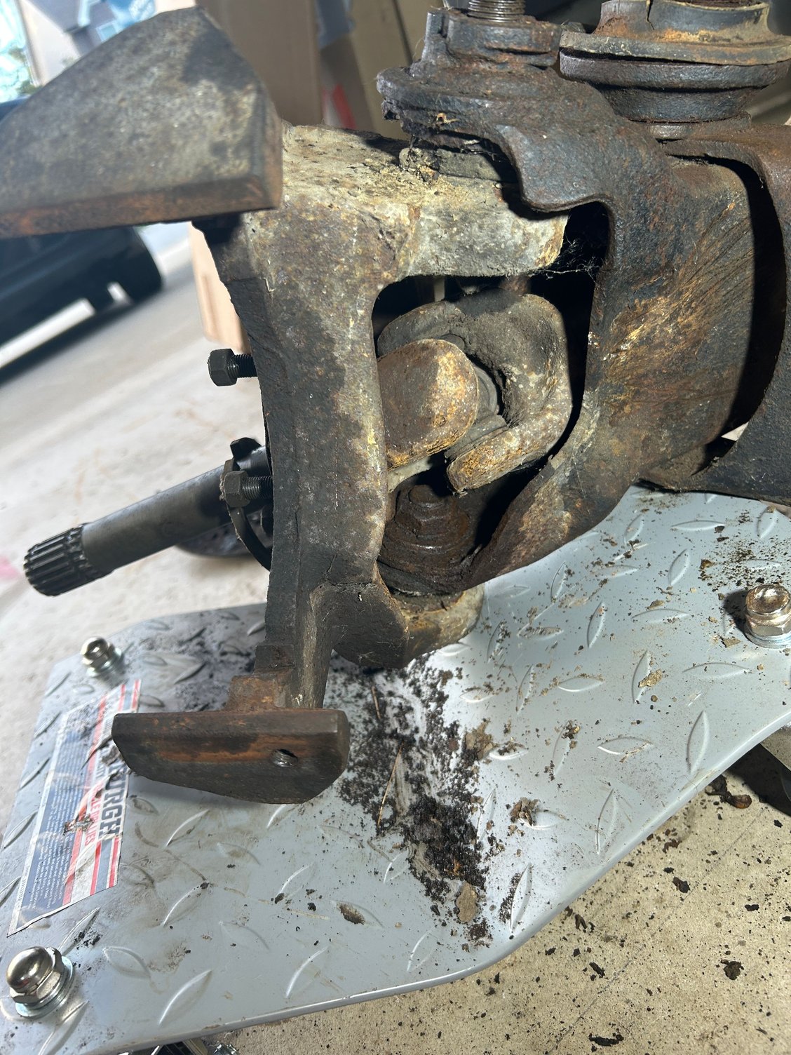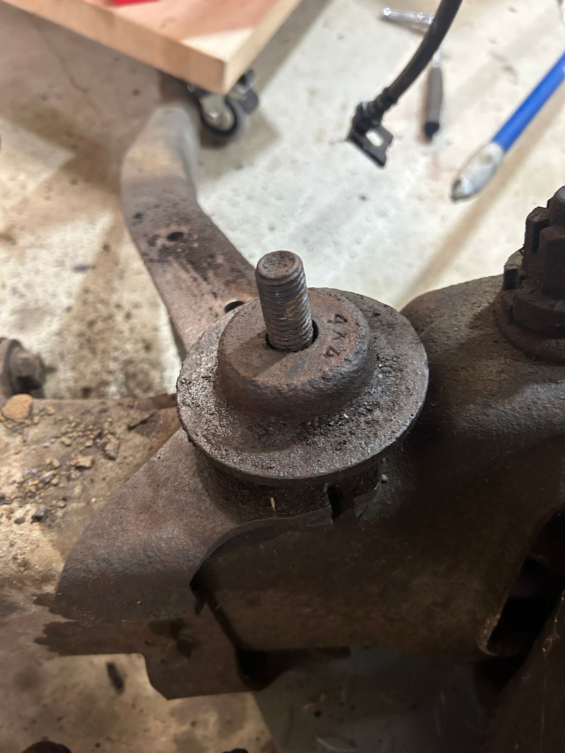 In the process of removing the remainder of the front steering and suspension components from the front axle. The lower spring retaining nuts were nearly impossible to get broken free. Used about a can of PB blaster over the past week, and finally some heat to get these off. Only think that compared was the body mounts in the amount of frustration haha.
