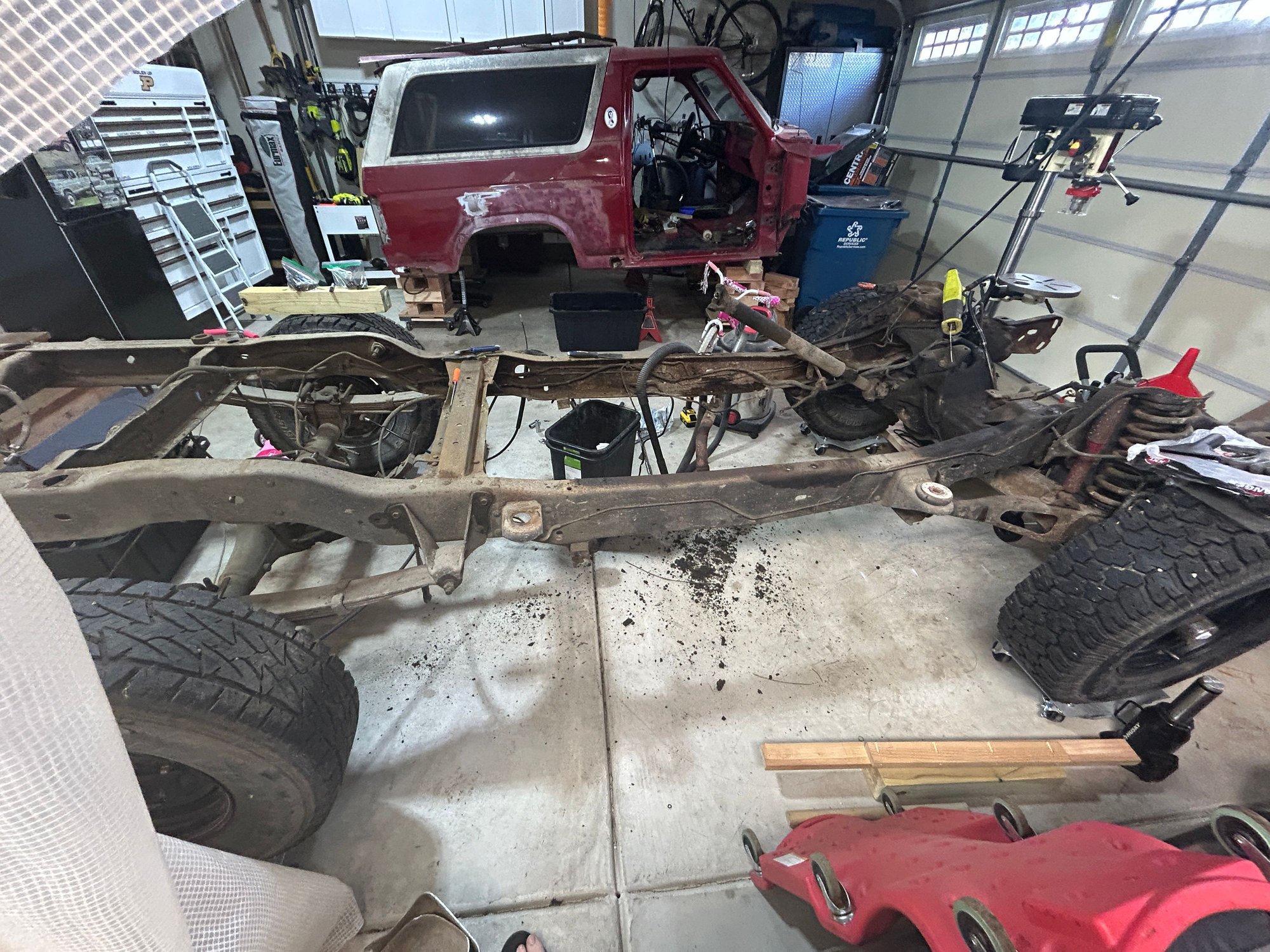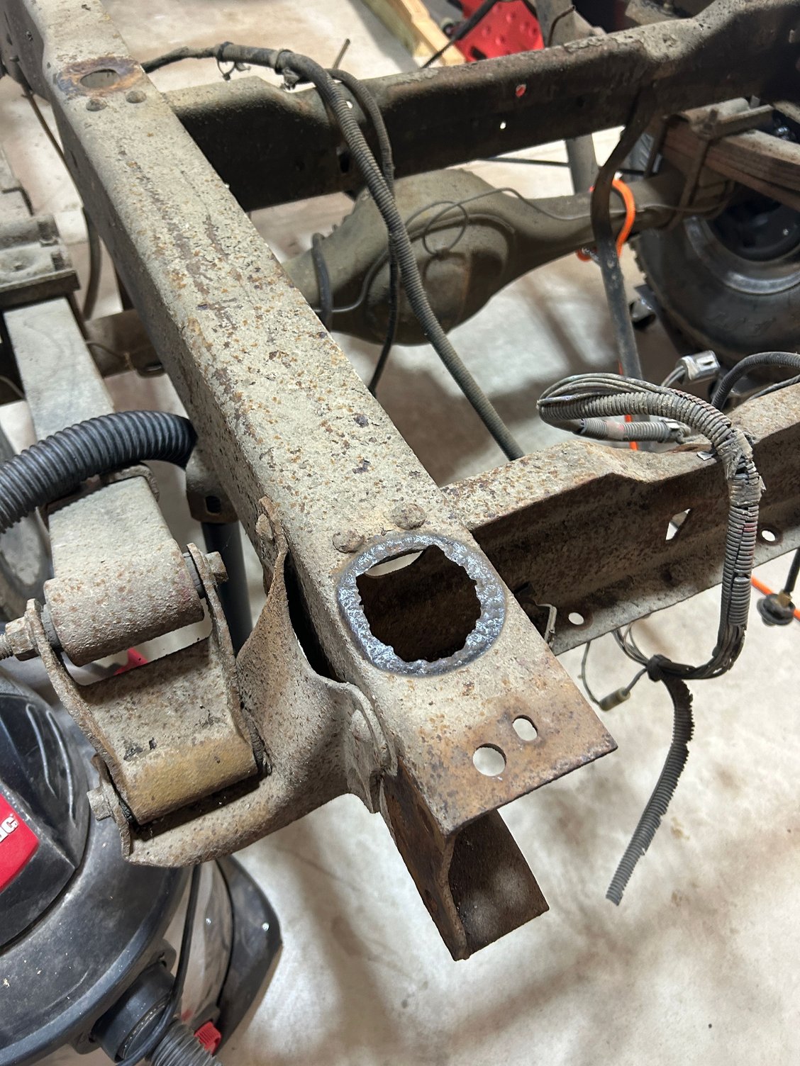 Well, the body and frame are finally separated. Removing body mount bolts has to be my least favorite task! had the same issues on my 72' Highboy. Every single one fought me. The frame is in great shape minus the body mount holes. I will address these after I get the frame stripped down and sandblasted. Taking the body off the frame by myself was quite the chore, but only had one "oh ****" moment when I bumped one of my jack stands and it was leaning precariously...