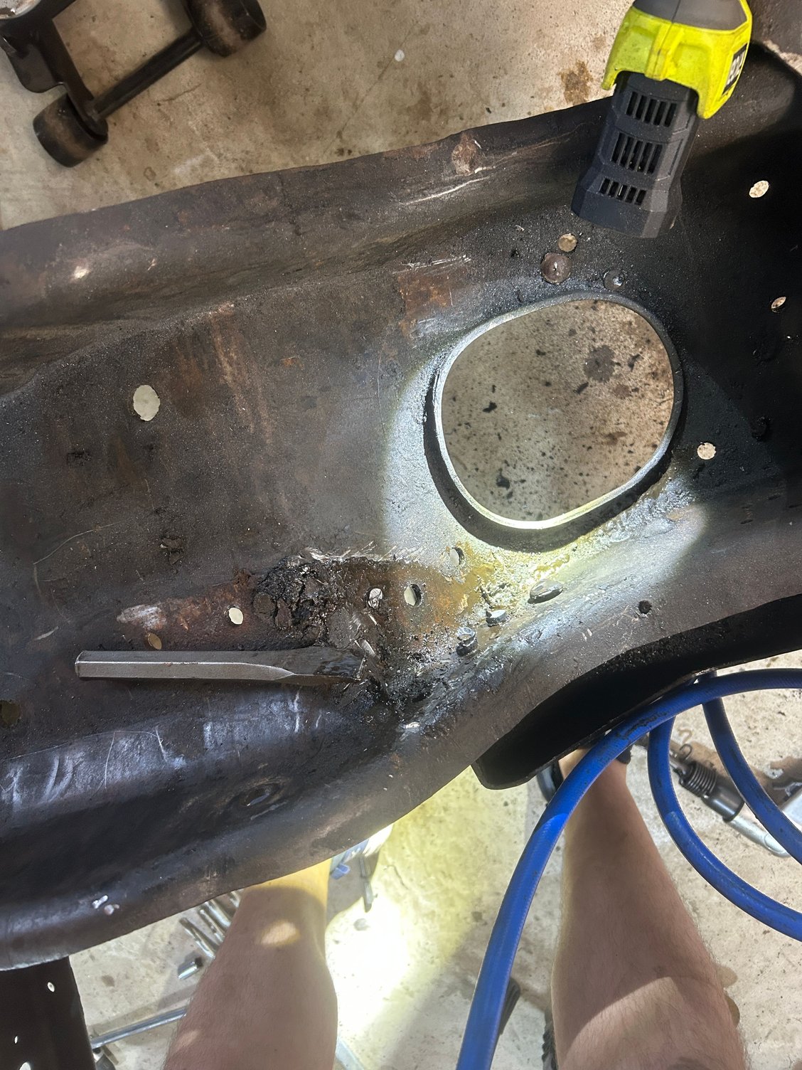 I have a couple pitted areas where the shock towers mounted that I'm still not sure if I'm going to address by cutting out patches and weld in new, or using JB Weld to fill in the depressions and call it a day.