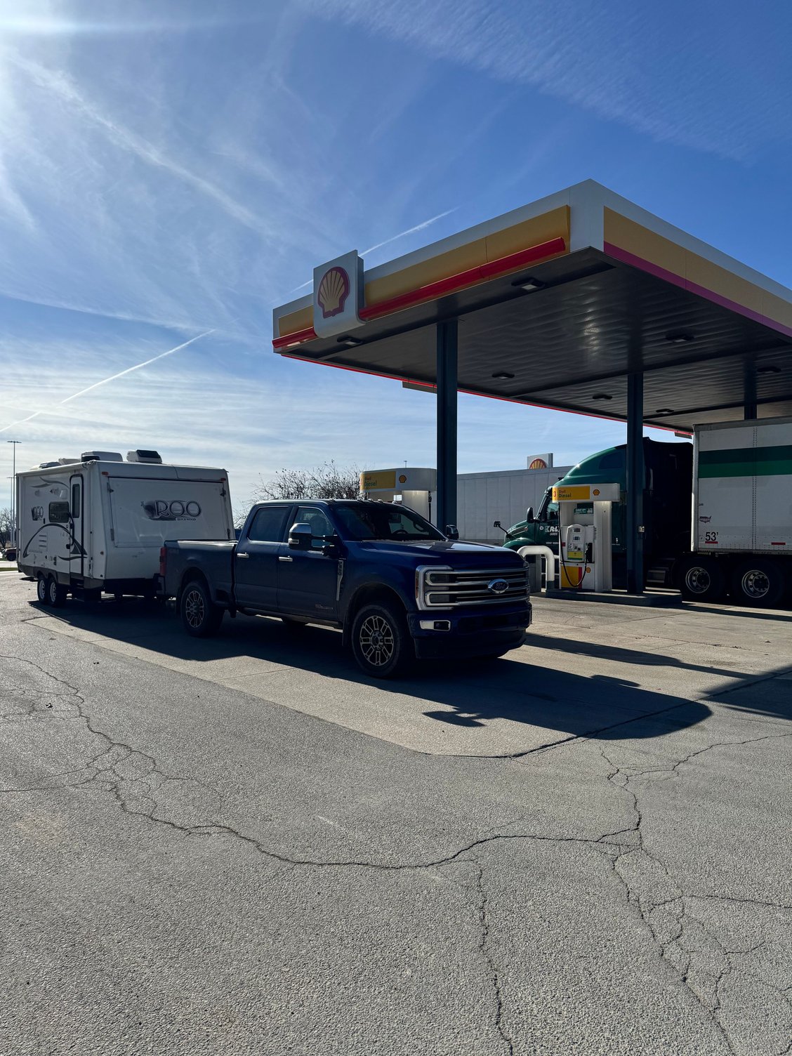 Hooked up my old 21SS bumper pull camper and loaded up to go hunting and also got a CAT scale weight. Drove 431 miles, 12.7MPG, used 28% of DEF. This is 51% better mileage than my 5.3 Suburban. Not as concerned about MPG as fuel range. Was able to get half way back home before buying fuel. Also first truck stop to buy diesel. Learned to wear gloves because EVERYTHING is coated with diesel at the truck stop. Also that nozzle really pumps it out!