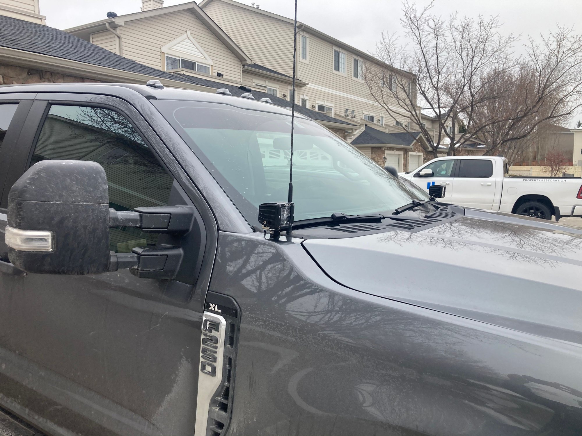 i had some rigid pro hyperspot pods from another truck kicking around so ordered the cheap L brackets from amazon (one bolt mount up closer to windshield under the black plastic wiper trim) and hooked em up to upfitter 1, still has the stock xl halogens which are sad, even on highbeam they make great fogs in blowing snow lol, but those 11 degree hyperspots get way way down there for looking for ditch critters at speed on the highways and of course for training left lane campers and 'new drivers' that swing into the wrong lane or cut you off otherwise...will update when i do lasfit bulbs for the low/high beams this summer