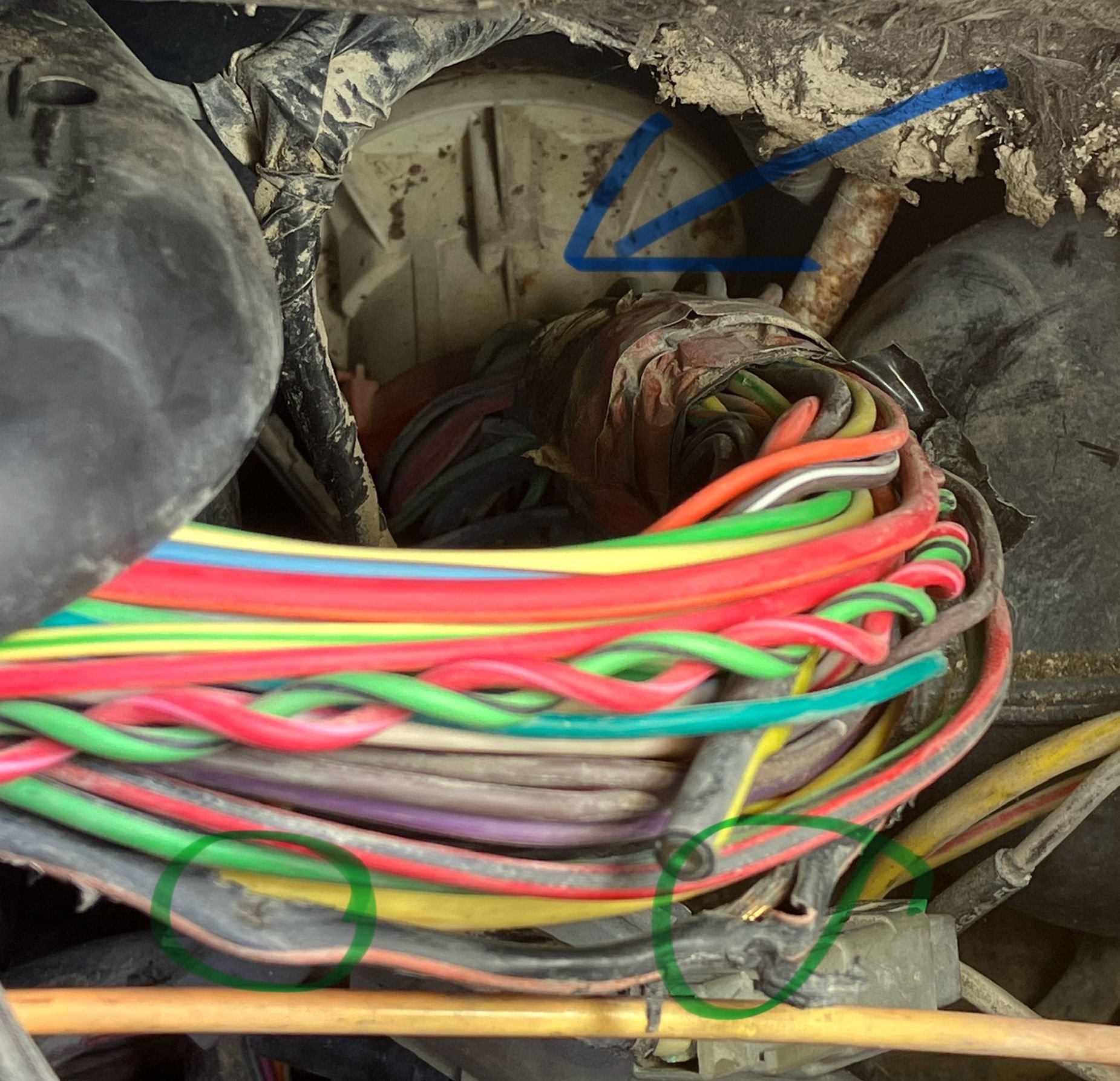 I noticed a damaged black/orange wire which matches one with a fusable link (circled in green) and I plan to do something with it, but I want to make sure there is no damage farther along.
