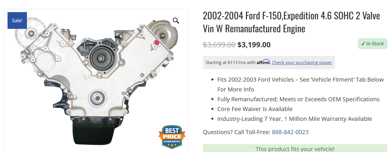A reman'd engine for a head gasket? Yeah, I guess ideally, but just picking one at random,...