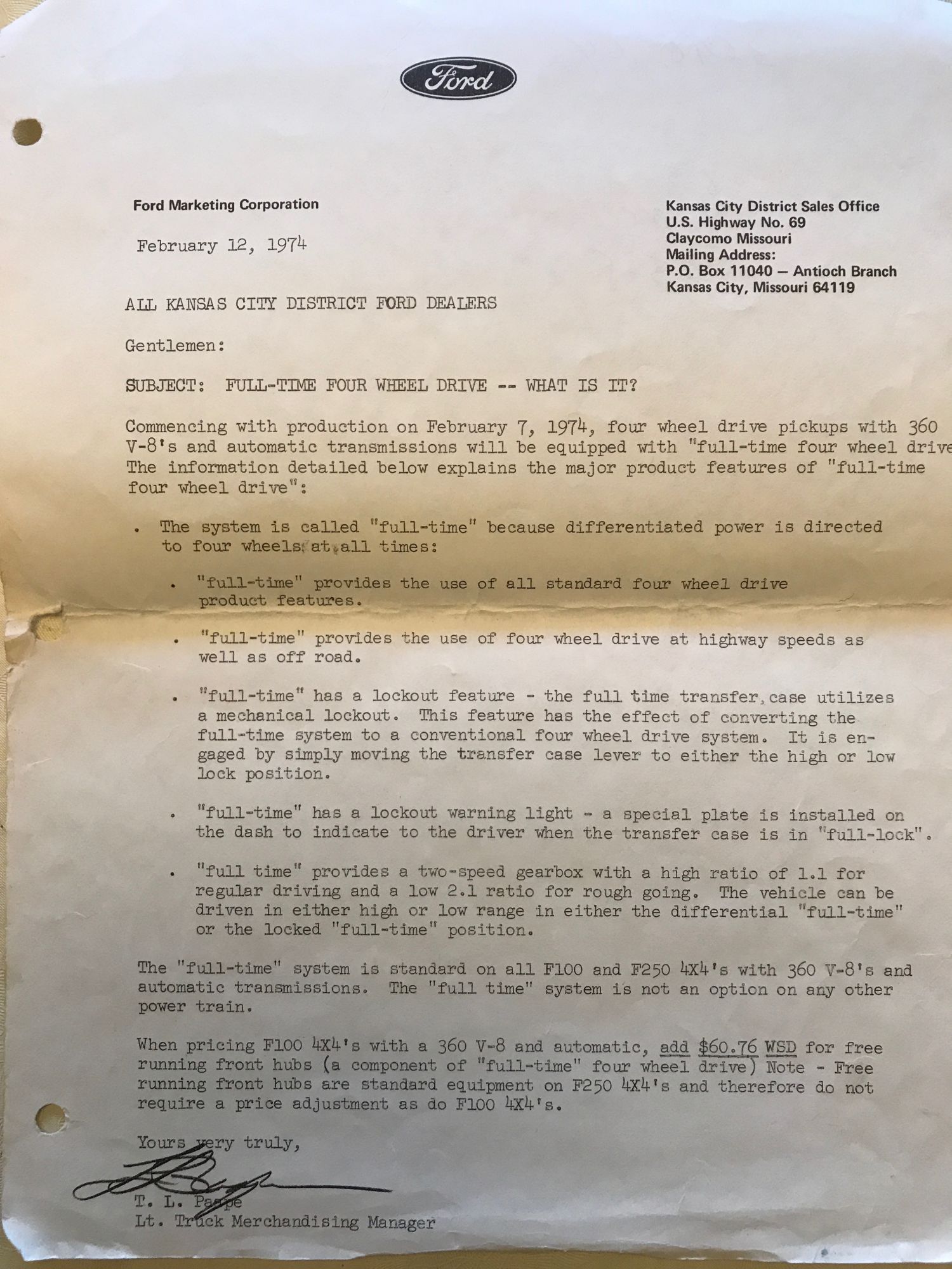 Awhile back I had a buddy of mine take a picture of his full time hub on his 76 F250 that a rewired a couple years ago. So I suppose in theory it should just bolt directly onto where his locking hub is.