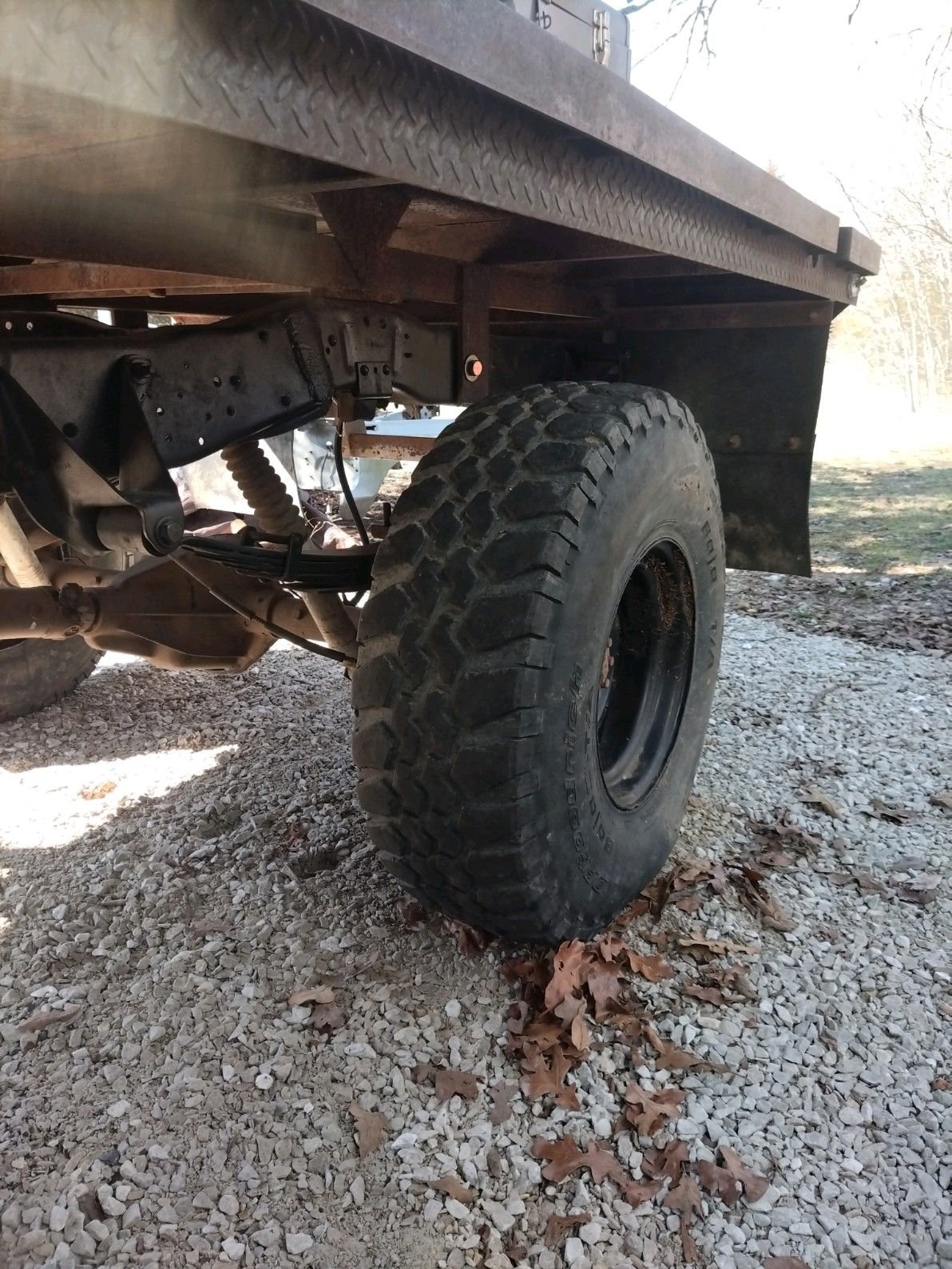 Now these ARE HMMWV mil take off 16.5's. They are cheap so run'm. They will be bald before you have to tube them to get them to hold air.