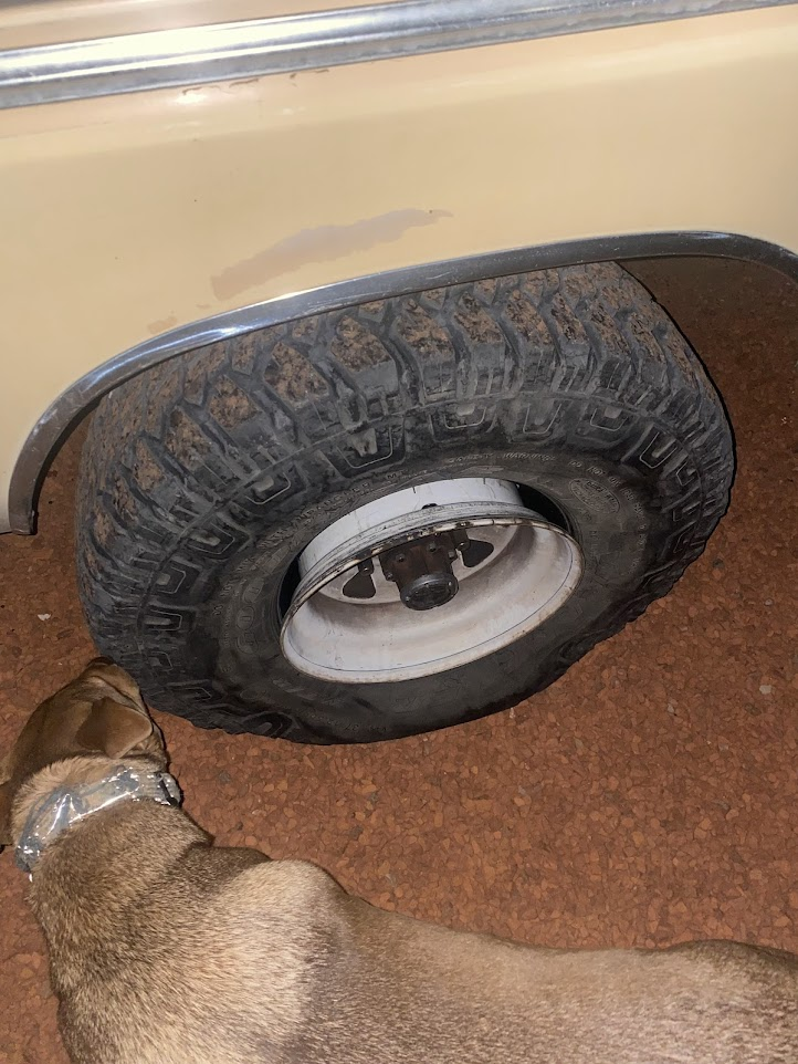 FYI those are NOT HMMWV take off tires, yes same manafacture and tread design (Goodyear Wrangler MT/R). If they were Mil takes off, they would be 16.5's. But are just 15's and yes have had a hard life.