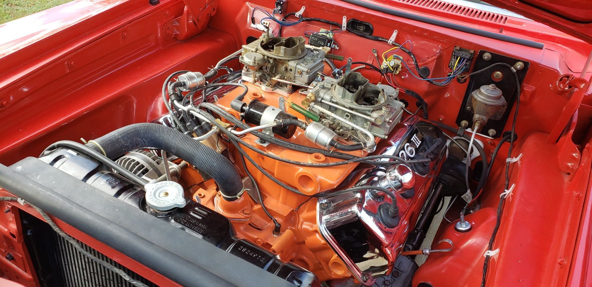 It has been restored as close as possible to original, color, interior, etc. Engine is an aftermarket Hemi block with a 4.25 bore, 4.250 stroke. 482 Cubic inches. Heads are original '65 aluminum "race Hemi" and the cam is a Racer Brown flat tappet. The factory intake has two Holley carburetors that are correct too.