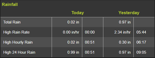 Happy Soggy Friday Morning! Woke up in the middle of the night to Flash and Rumble Boom and rain hammering the roof. We got at least 0.30” here at the house.