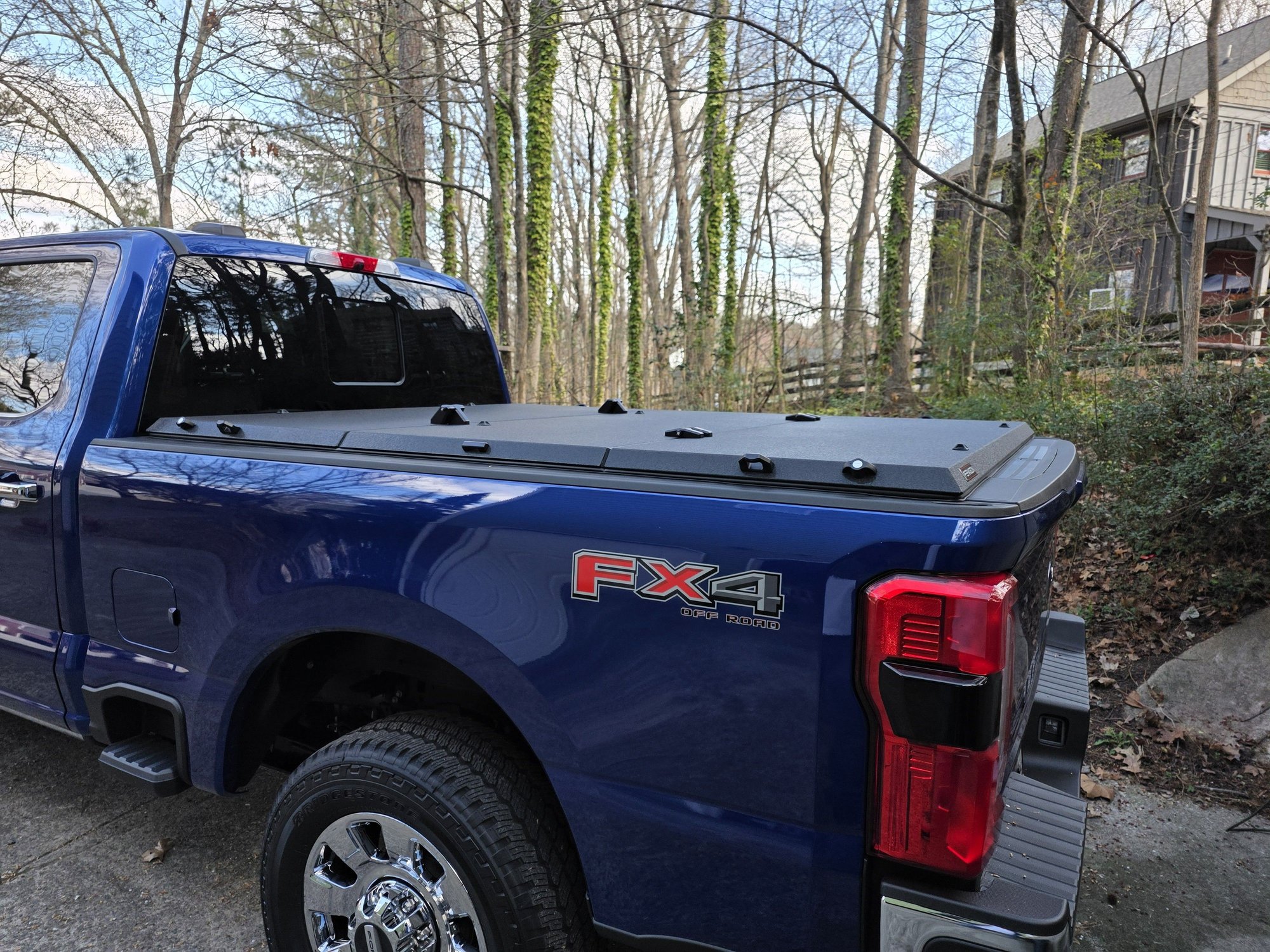 On my other pickups I have used the BAK rollup bed covers. When I picked up my 24 F350 I decided to.change things up and bought the Undercover Tri-fold bed cover. Another factor in the decision was it came with a 5 year warranty however the place I bought it from adds another 5 years to the warranty (10 years) if they installed the bed cover.