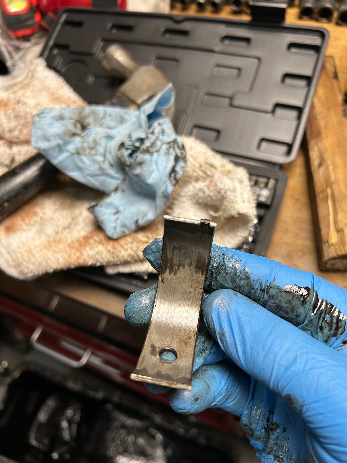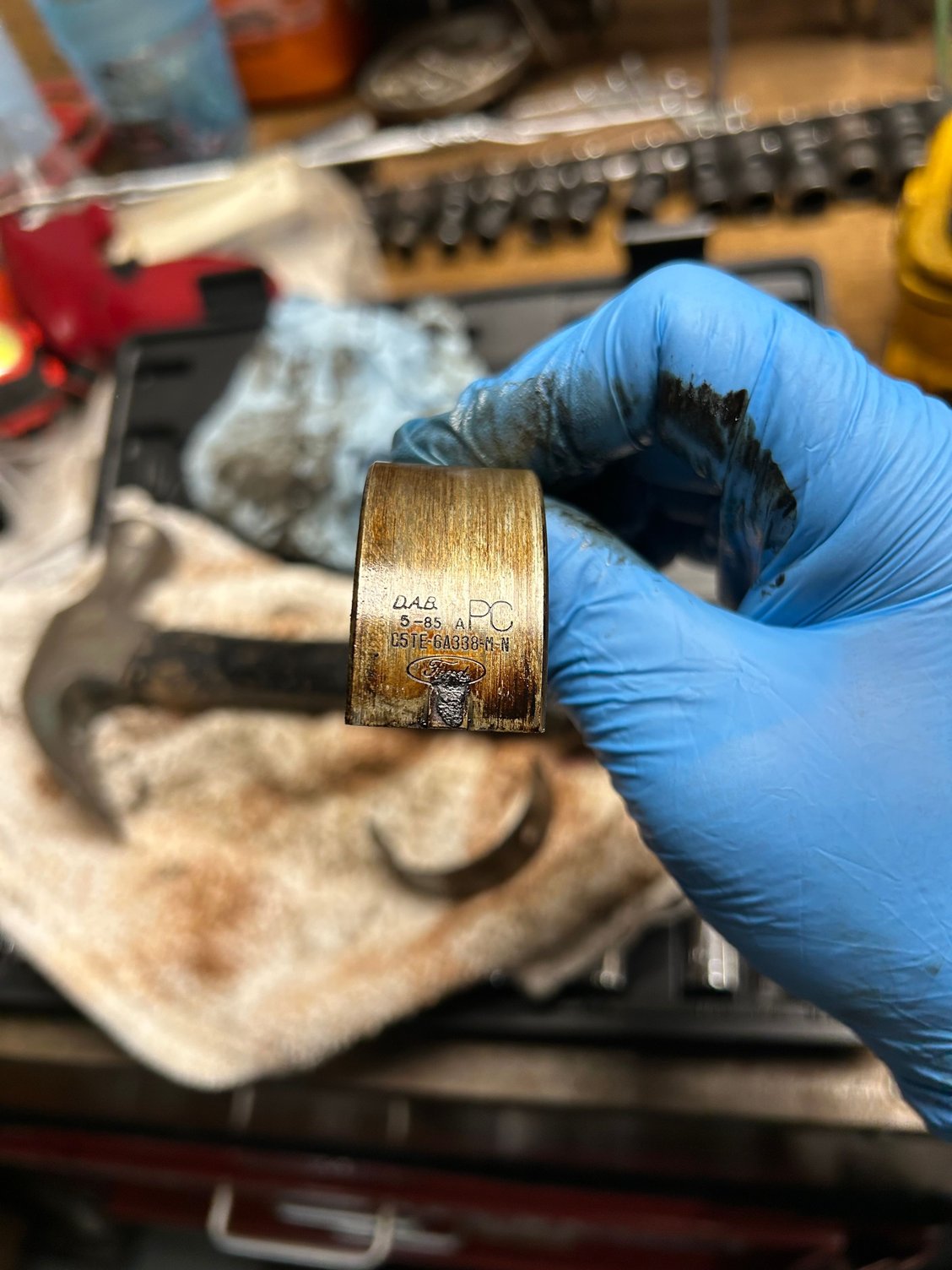we got the head off and bottom end opened up yesterday. The pan had the remnants of the sludgy, watery oil in it, but not much: maybe 2 quarts