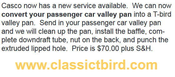 Is the valley pan on my 1955 239 the same as the valley pan on 55 T-Bird? I called and they weren’t sure but I was assuming it was. Just want to double check before I send it to them.