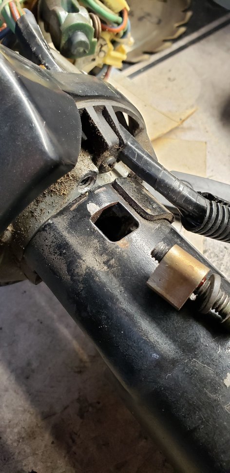 I got one on my hands. I purchased my '64 years ago, with this steering column installed from PO. Felt like the bearings were going bad so I pulled it and took it apart. She is a beauty, been modified a bit I believe. SO MY question, the column barrel, tube, is connecting via the pics below. I am use to seeing a couple of Square head style bolts, fasteners that hold on the columns barrel and or tube. I cannot for the life of me, find this type of fastener used, so to be able to identify what this may have come out of. There are (3) of these fasteners, It is a Tilt steering, tilt is thru the turn signal, has the sport wheel, like from a 70's Bronco or F100. column tube is like 2.25 OD. The closest I can to it was a 78, 79 column.
