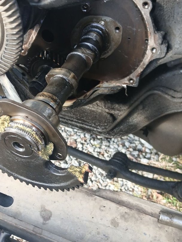 Now I said you cam gear was pressed off and on and if you try and remove it with a puller it would break as it did