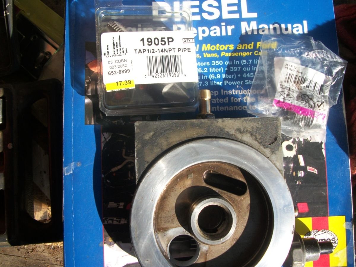 Ideally, you'll take that apart, tap and plug it also, for preventive maintenance, to keep it from ever leaking. I see where you ordered your gaskets from, sells an adorable kit. I used a brass plug in the F250 but a galvanized plug w/ jb weld has proved effective since 2013 on the F450 also. Parts from lowes or home depot.