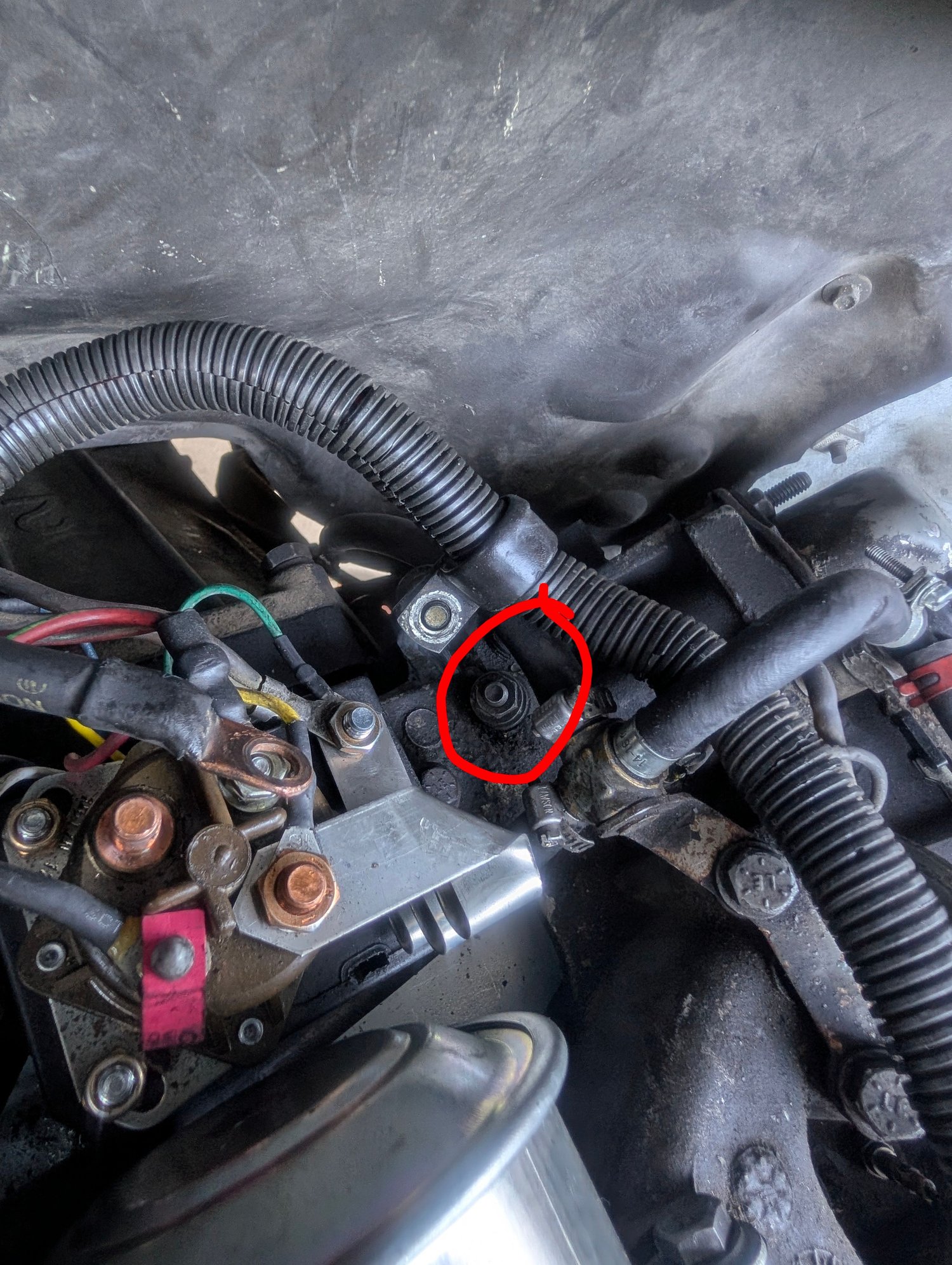 Alright guys, I got a crank and no start. I went through all the fuel lines and did find loose injectors that were bubbling, took them out and some were missing the coper washers, guess those fell out along the way? Fuel leaks are gone but still no start. I purged the air from the valve while engine was cranking till only fuel came out with no air. Verified all caps on snapped on and nothing else is loose or orings cracked on caps. I have something that looks like a ground terminal that is empty. I know something went there before I pulled the engine but I have no pics of what was there. Can you guys please take a look in your tuck and see? This area is directly to the right of the glow plug solenoid when standing in front of the truck looking at engine.